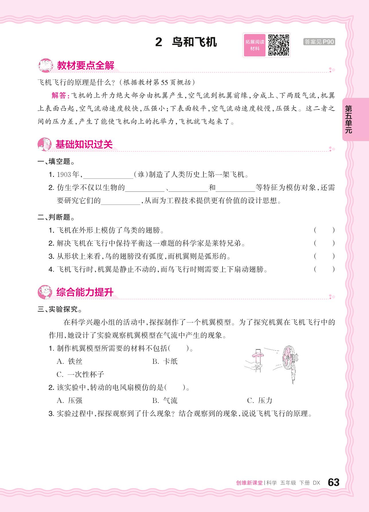 2024春下册五年级科学大象版 第五单元 大自然里的老师——2. 鸟和飞机