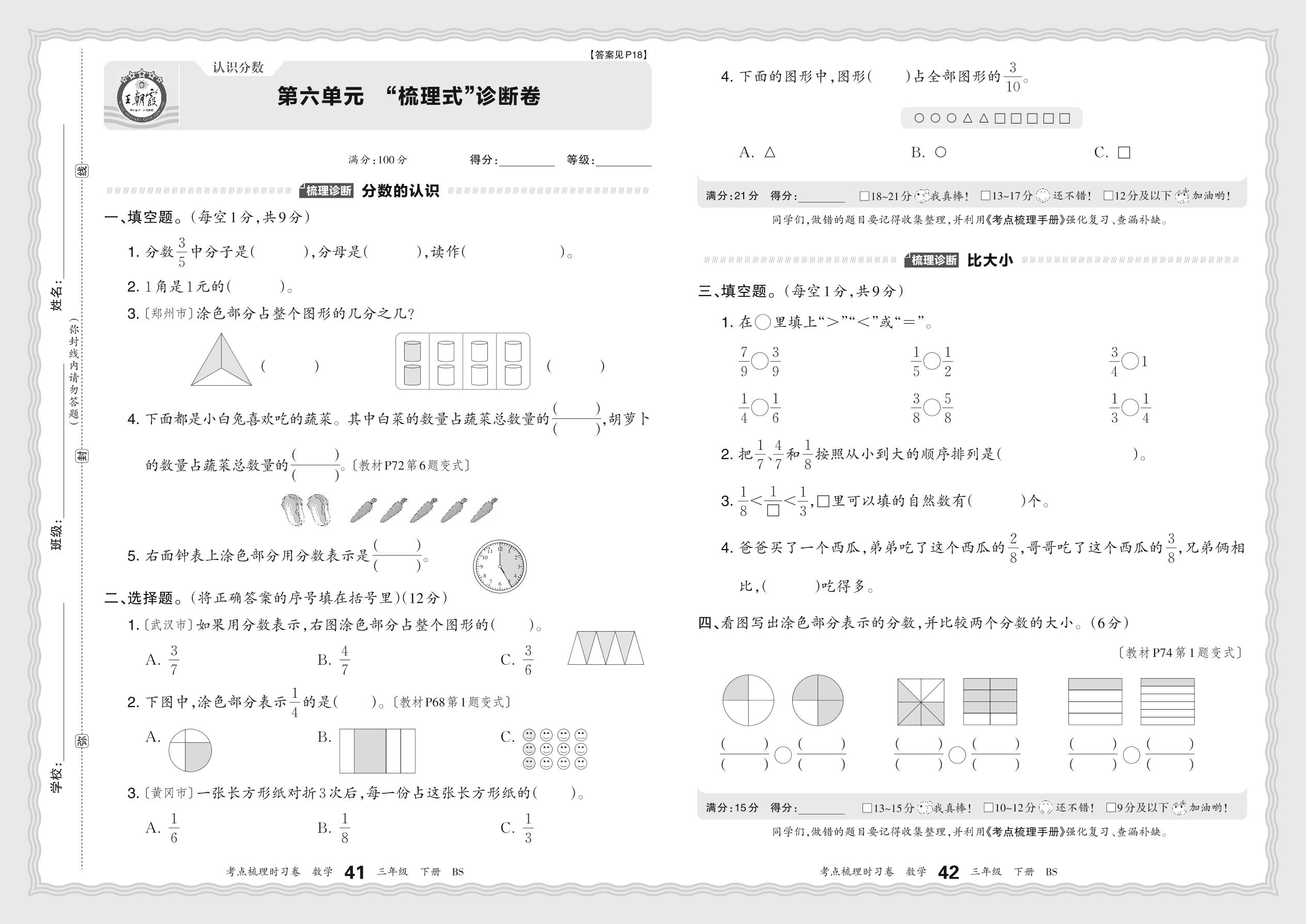 2024春下册三年级数学北师版 第六单元 “梳理式”诊断卷