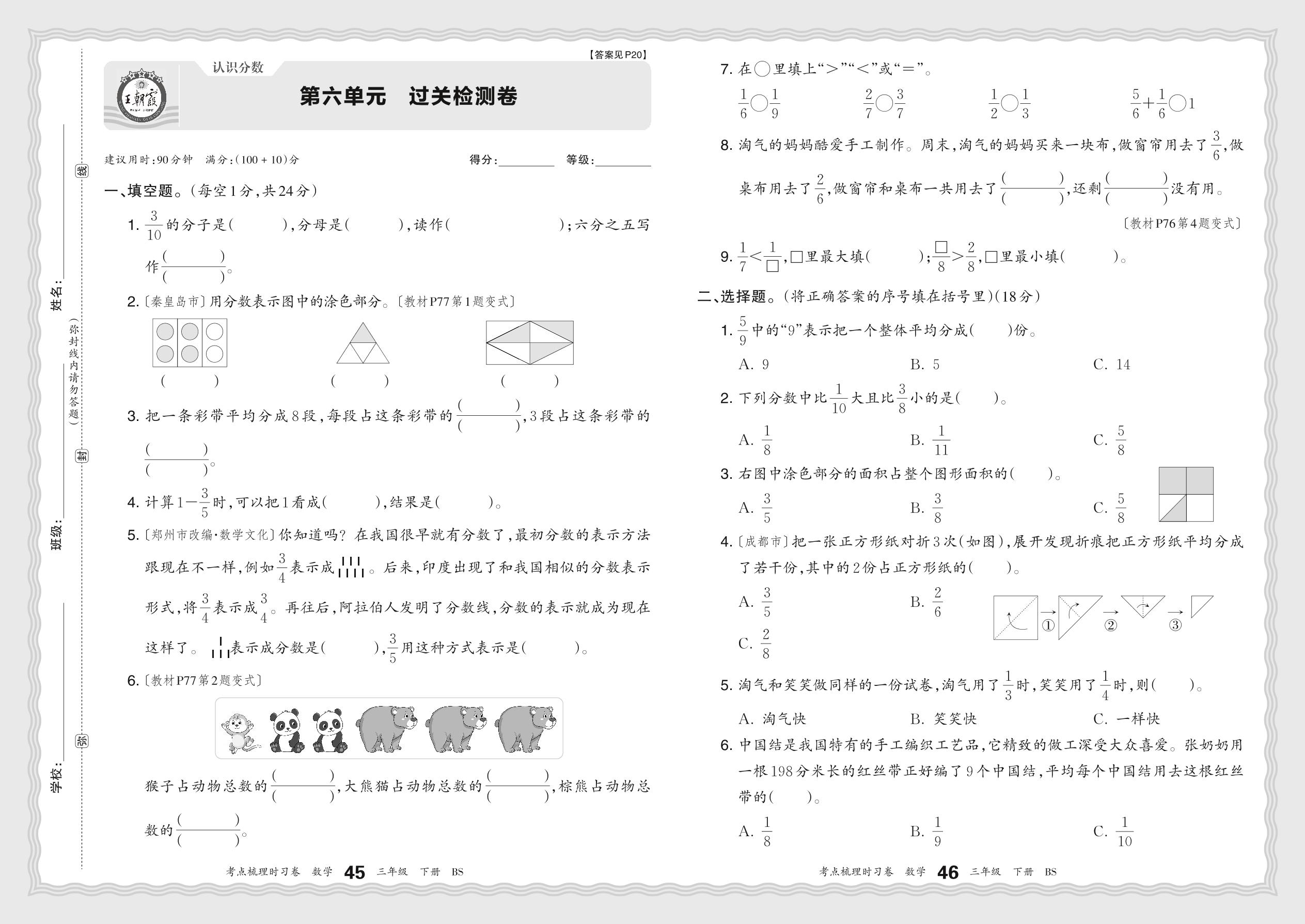 2024春下册三年级数学北师版 第六单元 过关检测卷