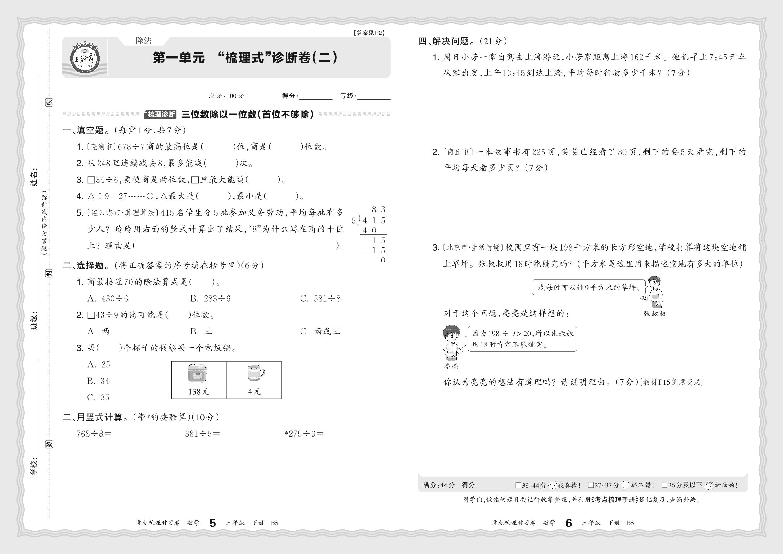 2024春下册三年级数学北师版 第一单元 “梳理式”诊断卷(二)