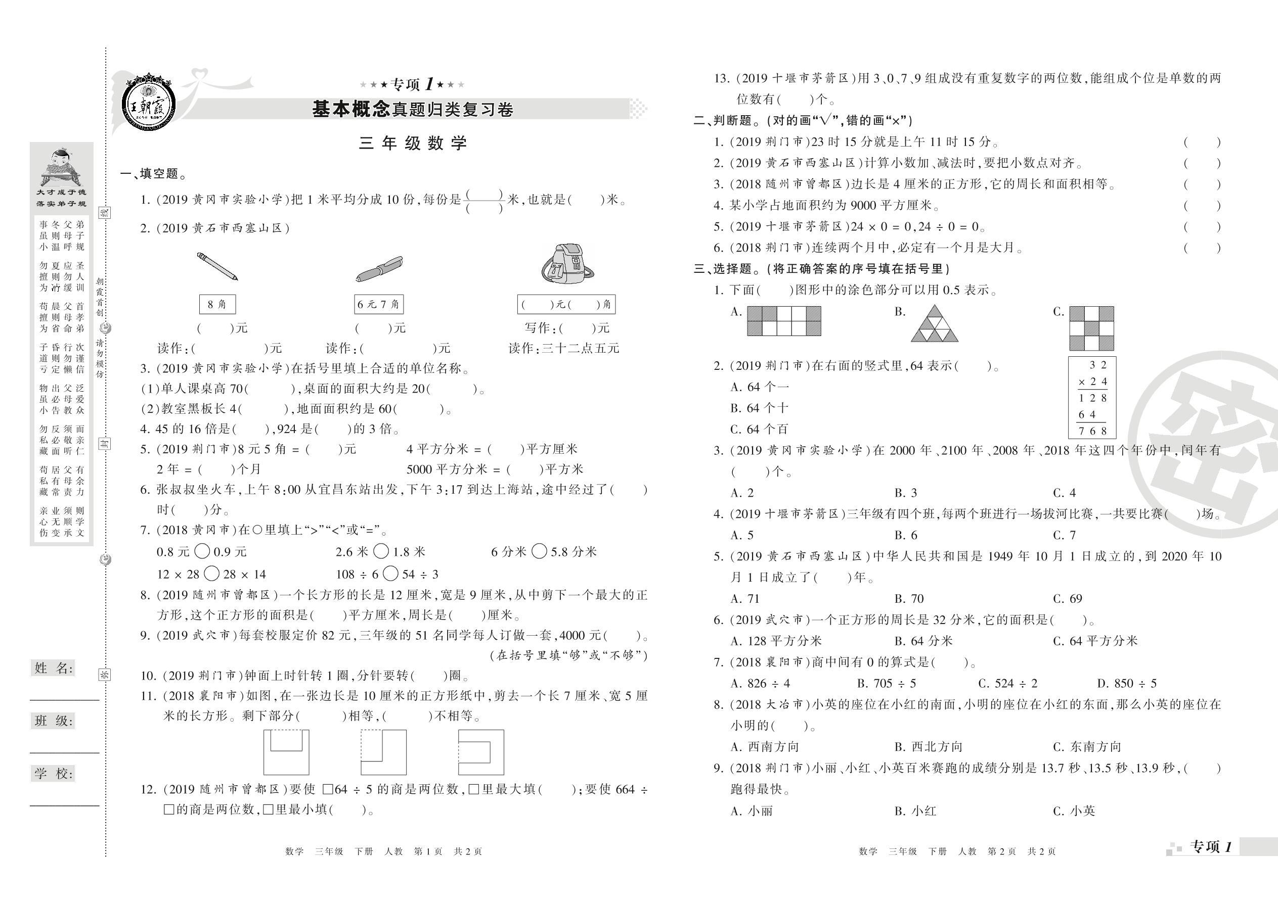 王朝霞期末专项卷——基本概念、计算真题归类复习卷三年级下册数学(人教版)_R21080493326【0】