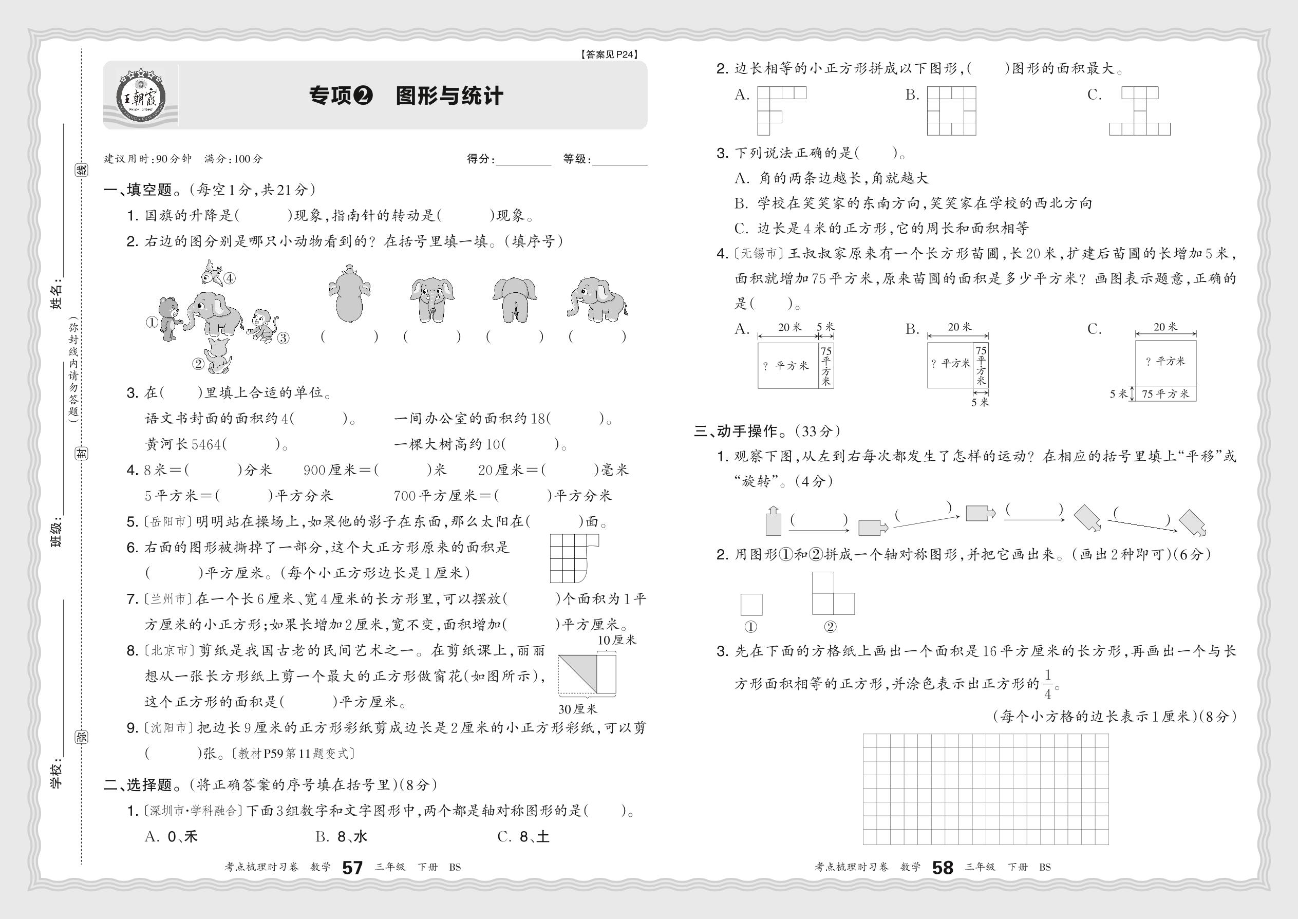 2024春下册三年级数学北师版 期末专项卷KD版·图形与统计【2】