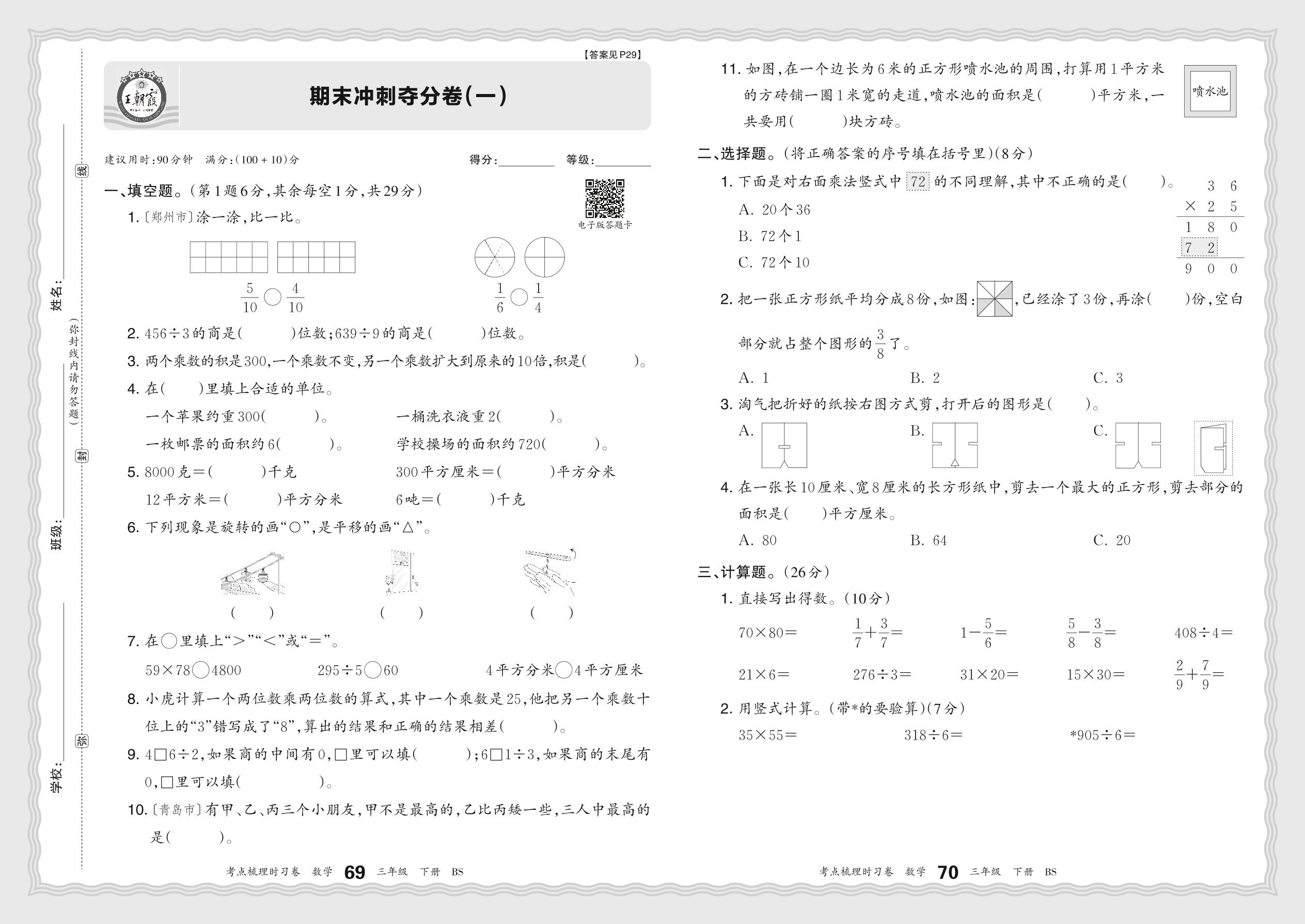 2024春下册三年级数学北师版 期末冲刺夺分卷(一)
