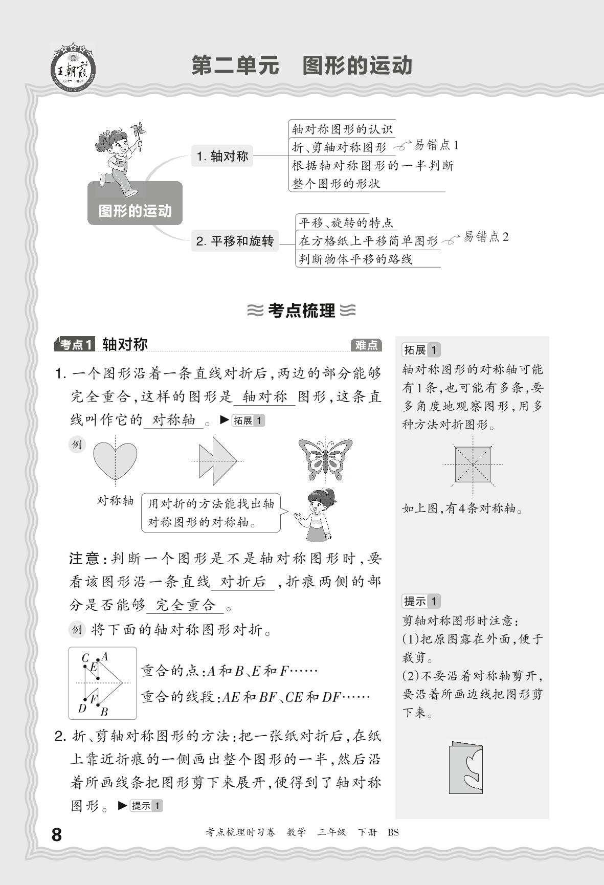 2024春下册三年级数学北师版 考点梳理手册——第二单元 图形的运动