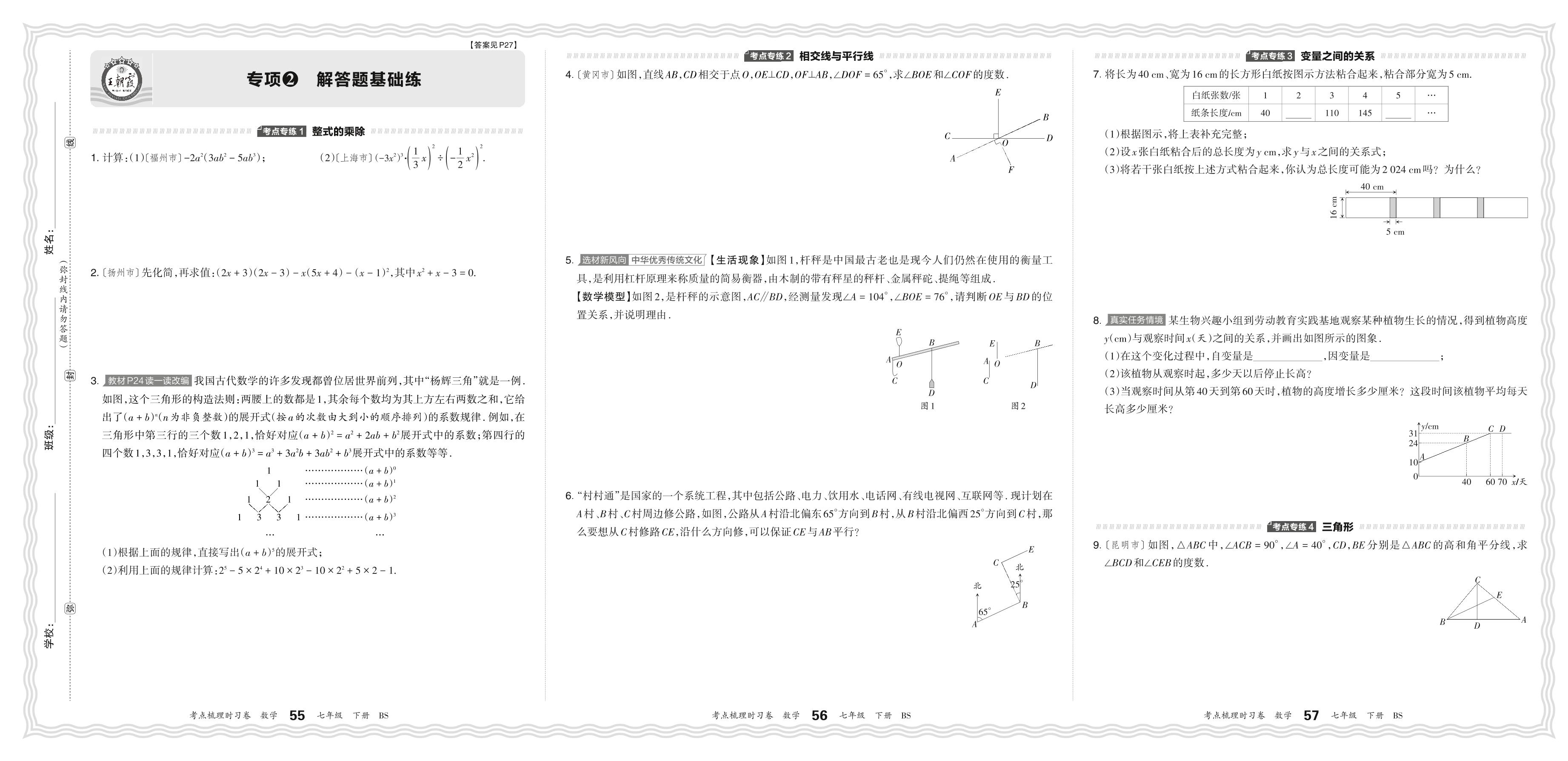 2024春下册七年级数学北师版 期末专项卷KD版·解答题基础练【2】
