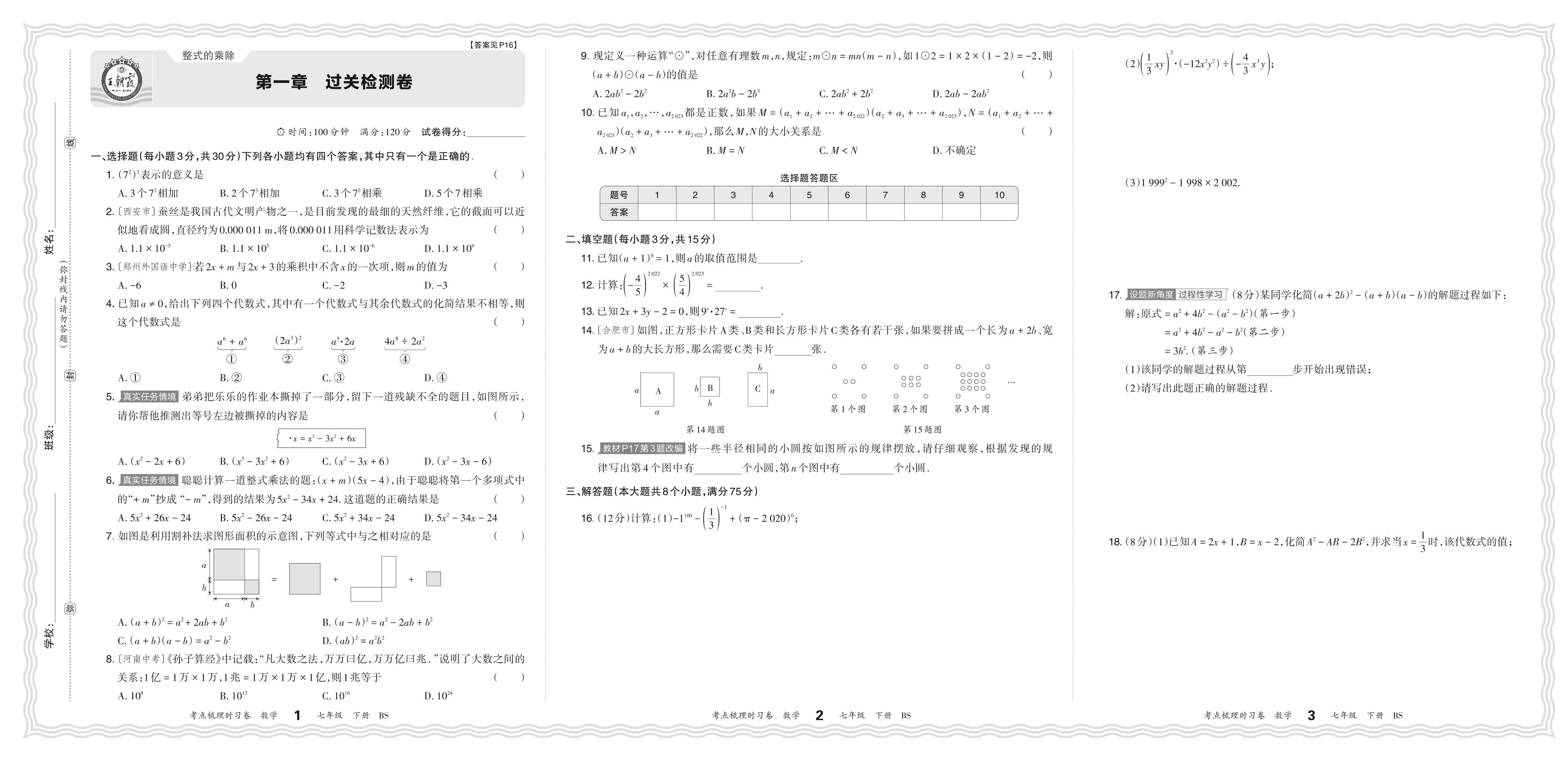 2024春下册七年级数学北师版 第一章 过关检测卷