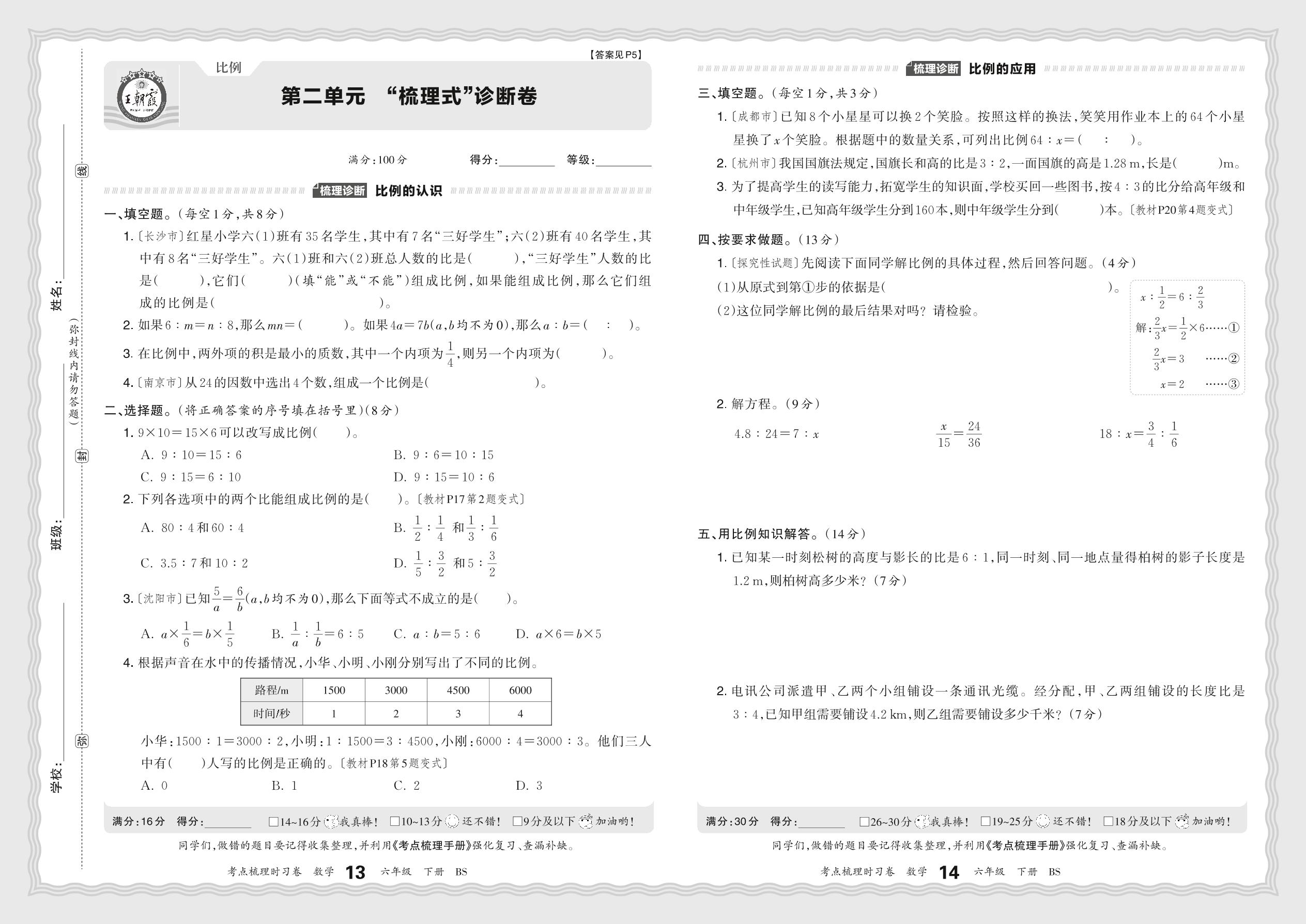 2024春下册六年级数学北师版 第二单元 “梳理式”诊断卷