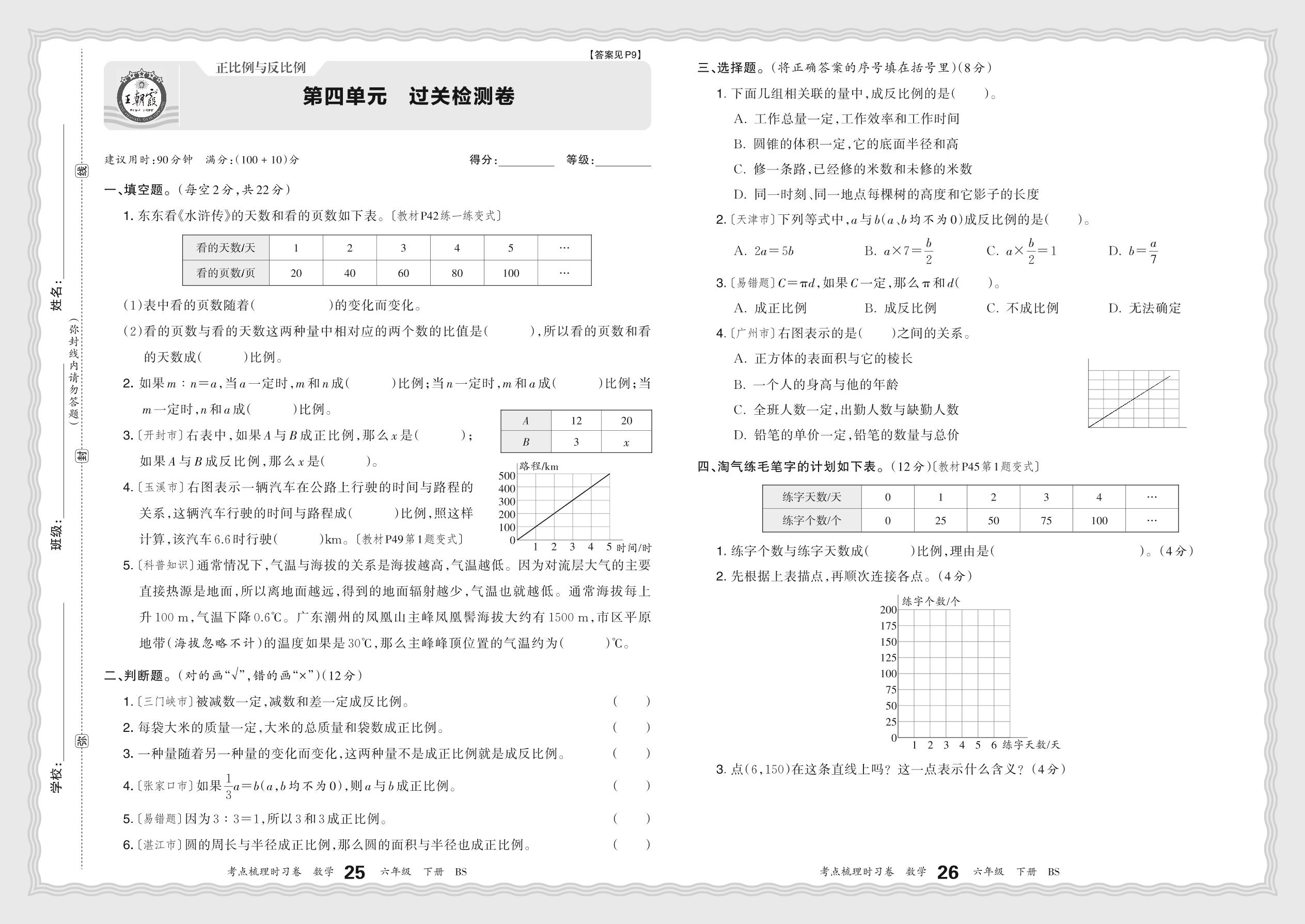 2024春下册六年级数学北师版 第四单元 过关检测卷