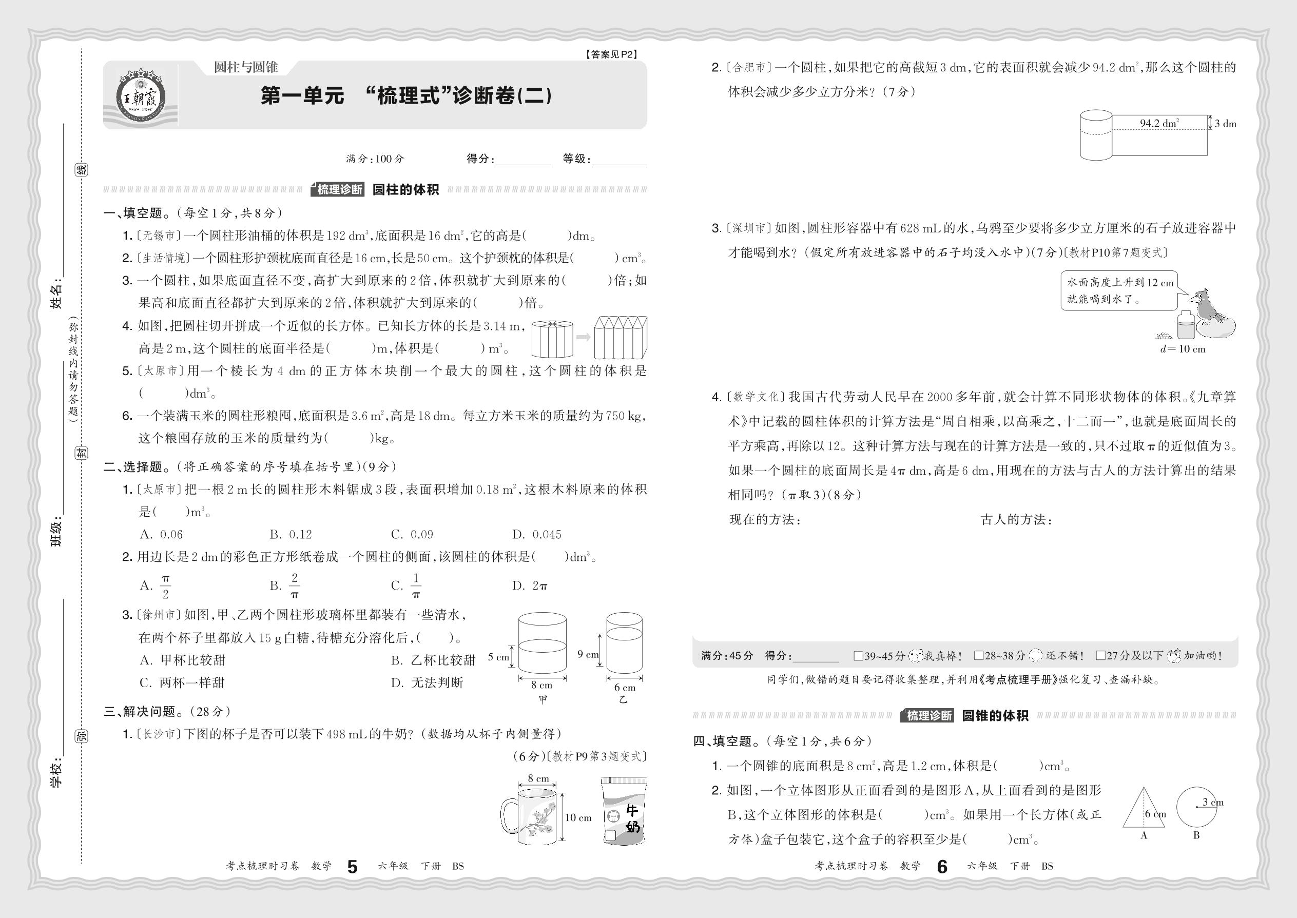 2024春下册六年级数学北师版 第一单元 “梳理式”诊断卷(二)