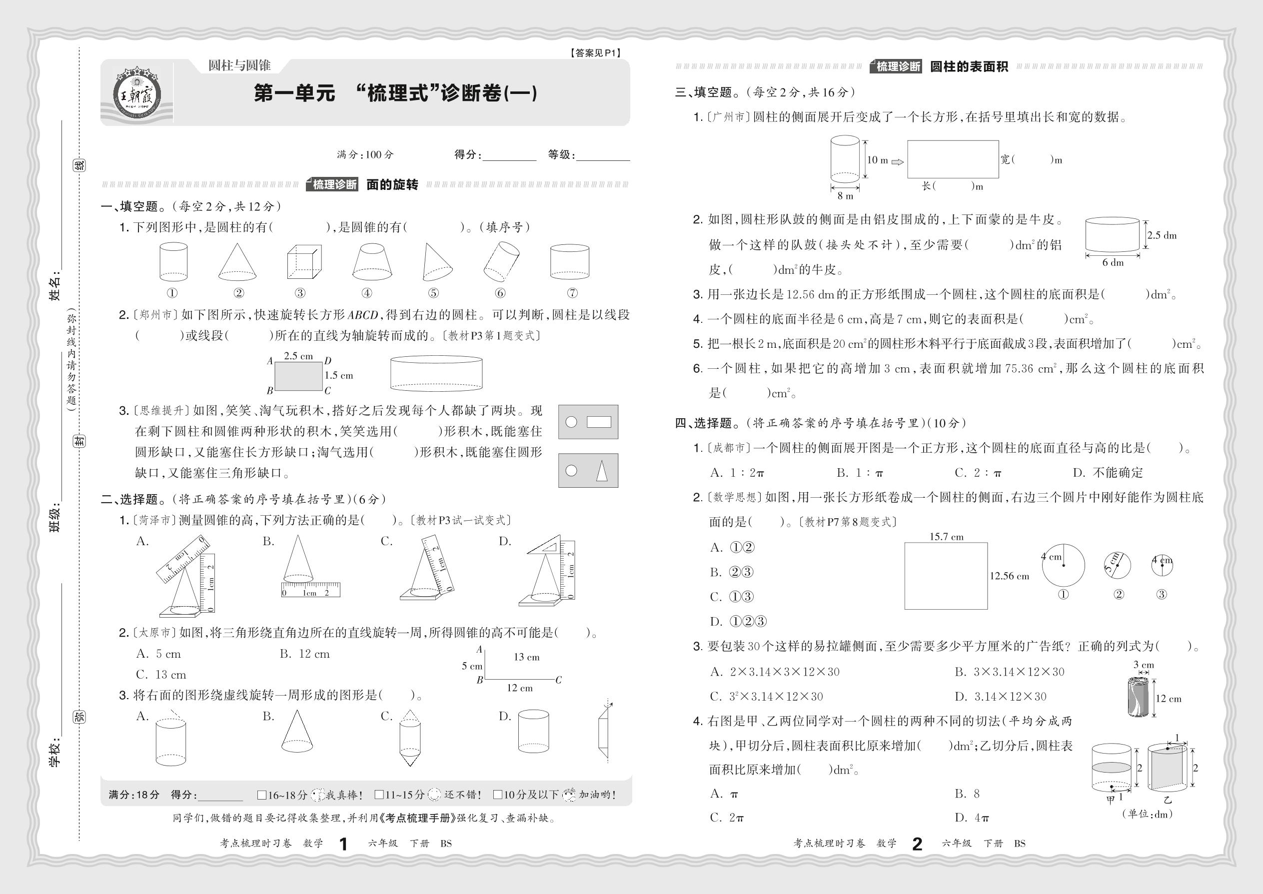 2024春下册六年级数学北师版 第一单元 “梳理式”诊断卷(一)