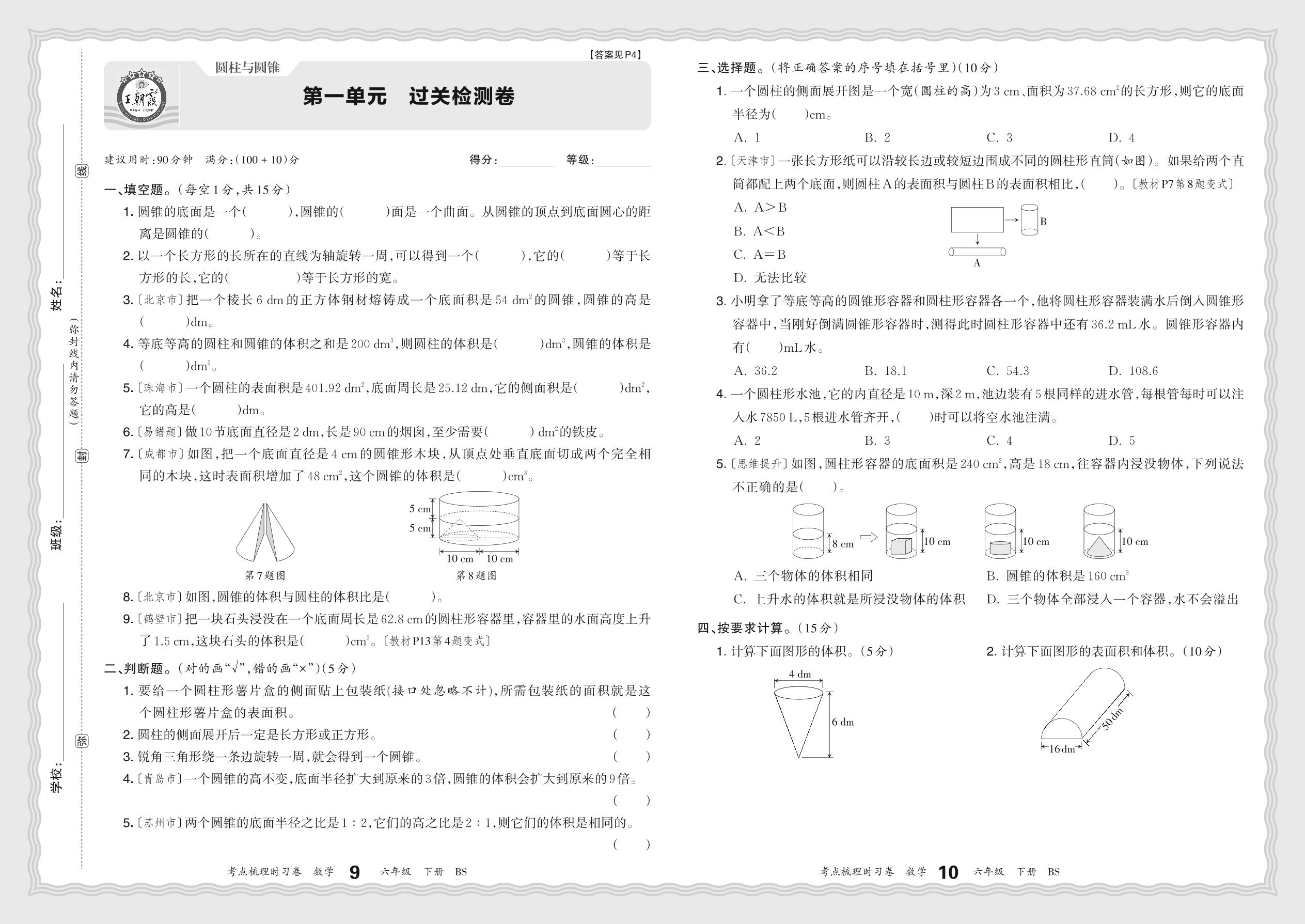 2024春下册六年级数学北师版 第一单元 过关检测卷