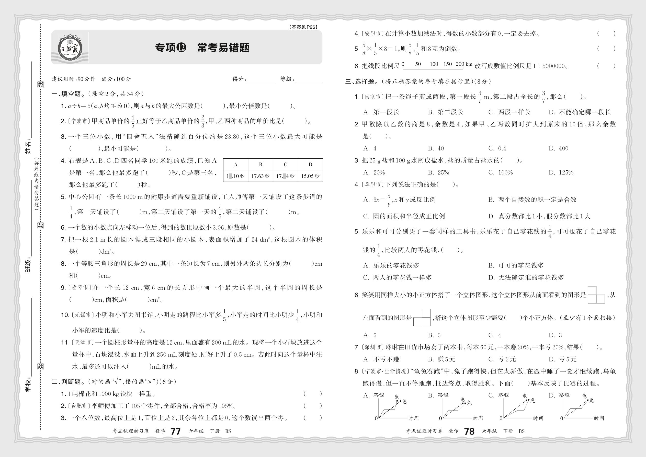2024春下册六年级数学北师版 期末专项卷KD版·常考易错题【12】