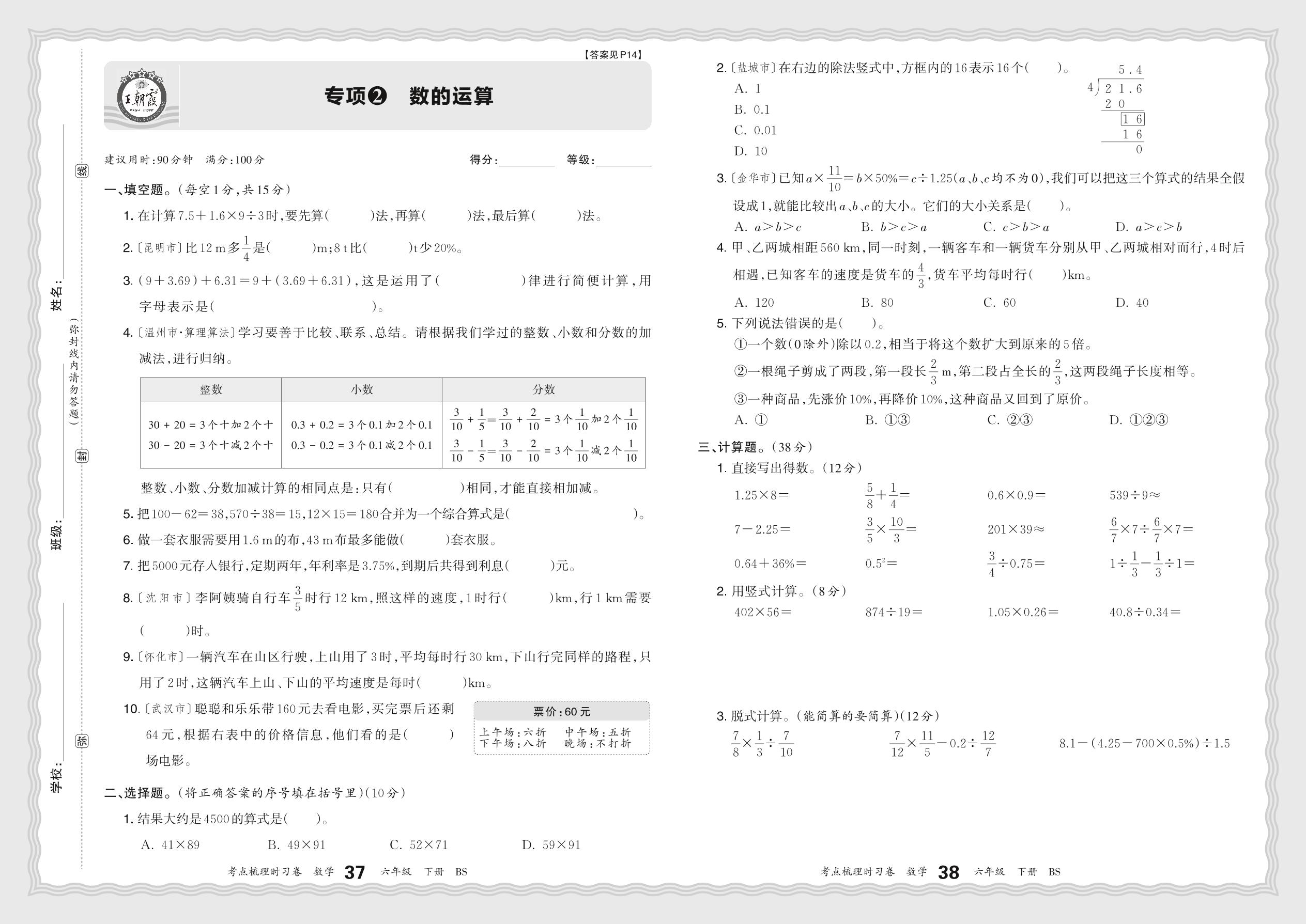 2024春下册六年级数学北师版 期末专项卷KD版·数的运算【2】