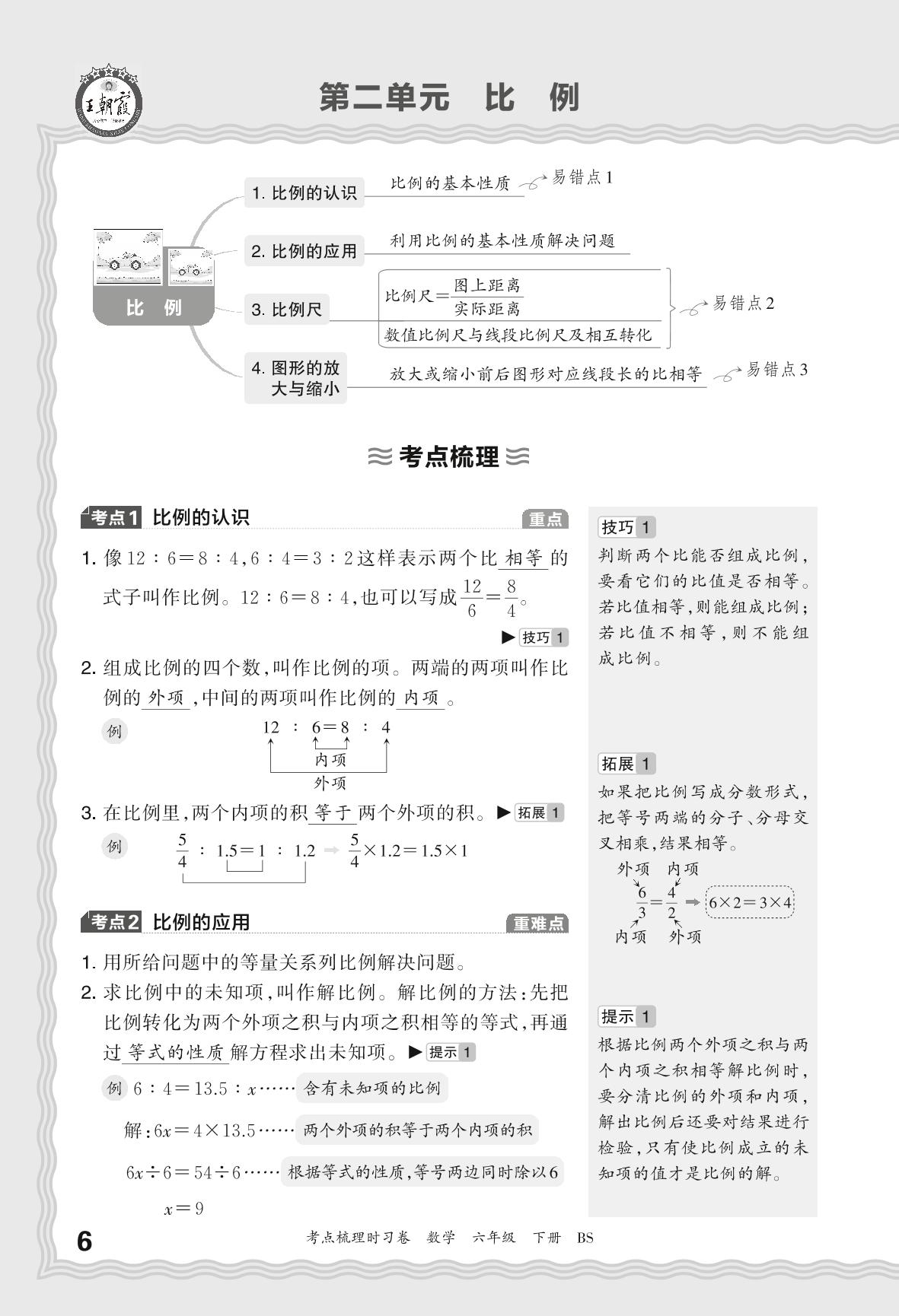 2024春下册六年级数学北师版 考点梳理手册——第二单元 比例【2】