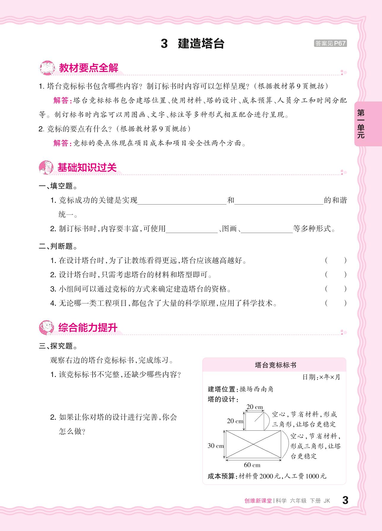 2024春下册六年级科学教科版 第一单元 小小工程师——3. 建造塔台