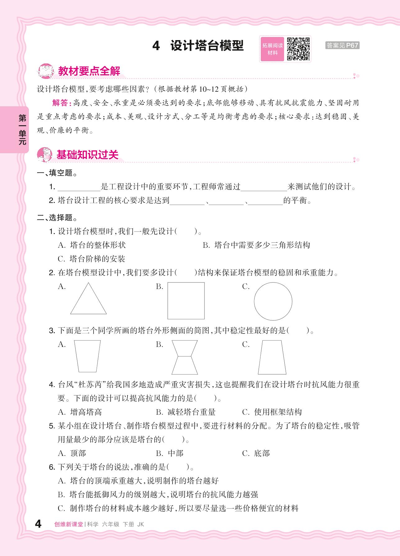 2024春下册六年级科学教科版 第一单元 小小工程师——4. 设计塔台模型