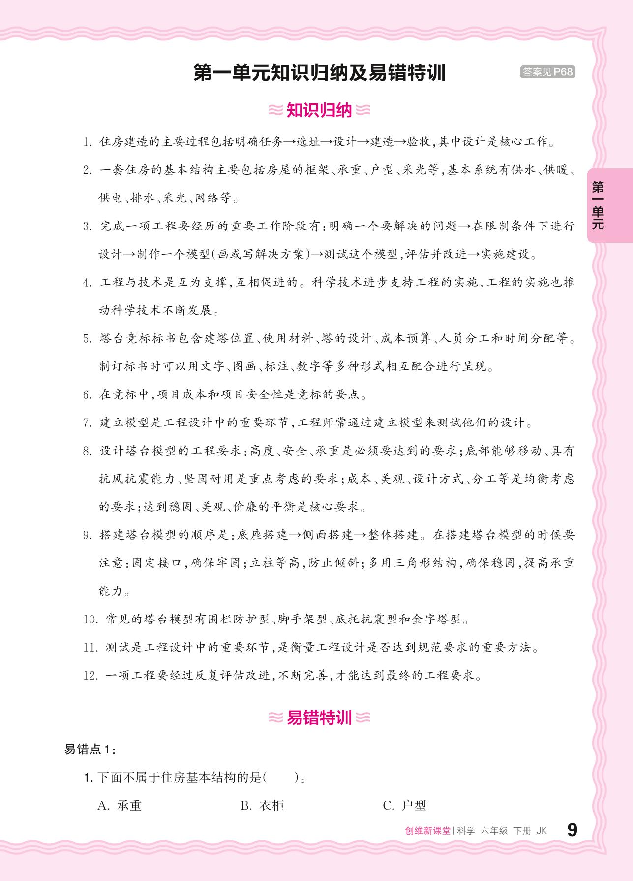 2024春下册六年级科学教科版 第一单元知识归纳及易错特训
