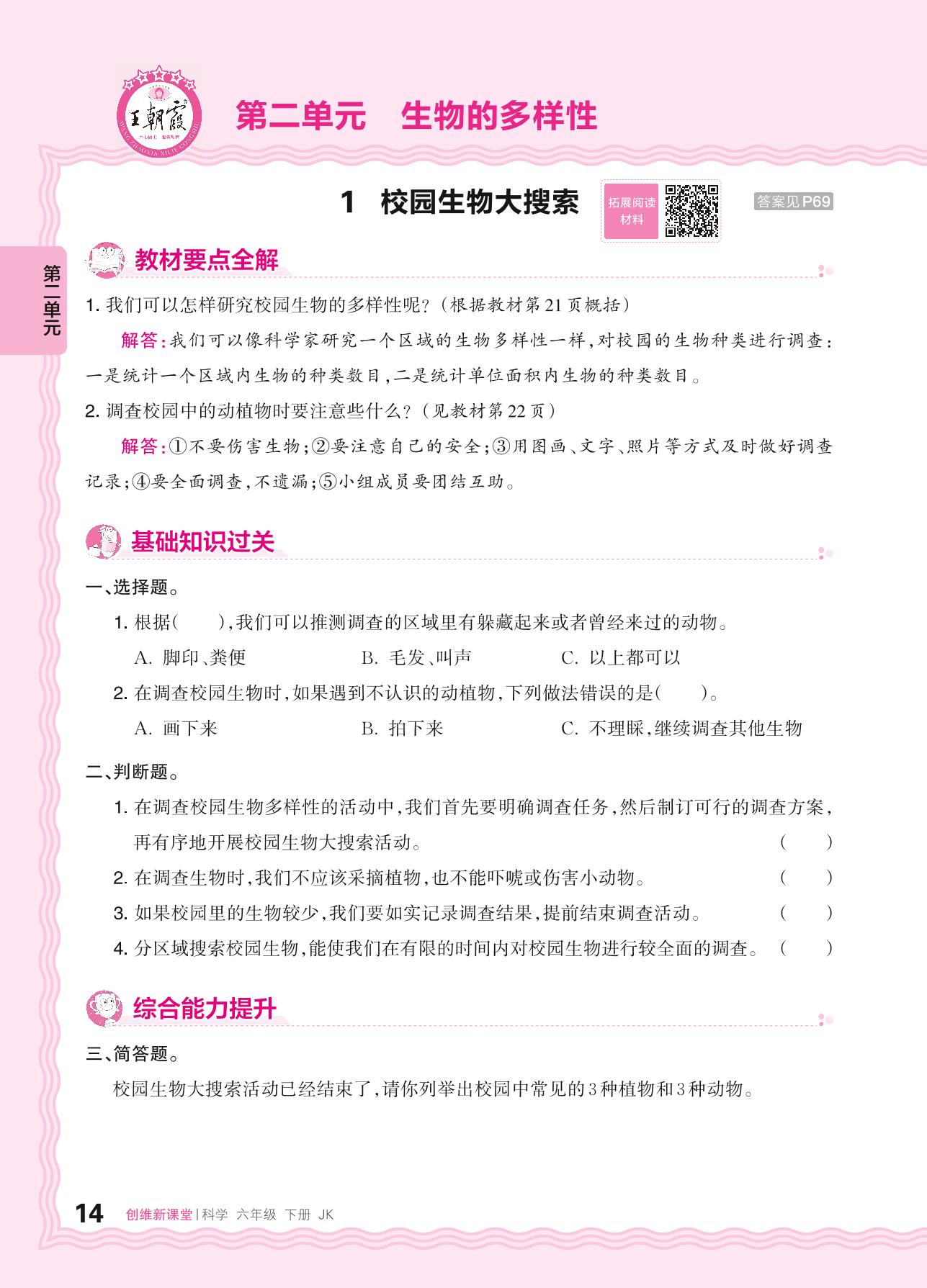 2024春下册六年级科学教科版 第二单元 生物的多样性——1. 校园生物大搜索