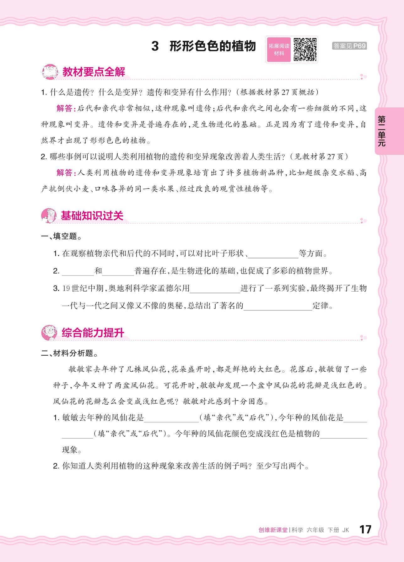 2024春下册六年级科学教科版 第二单元 生物的多样性——3. 形形色色的植物