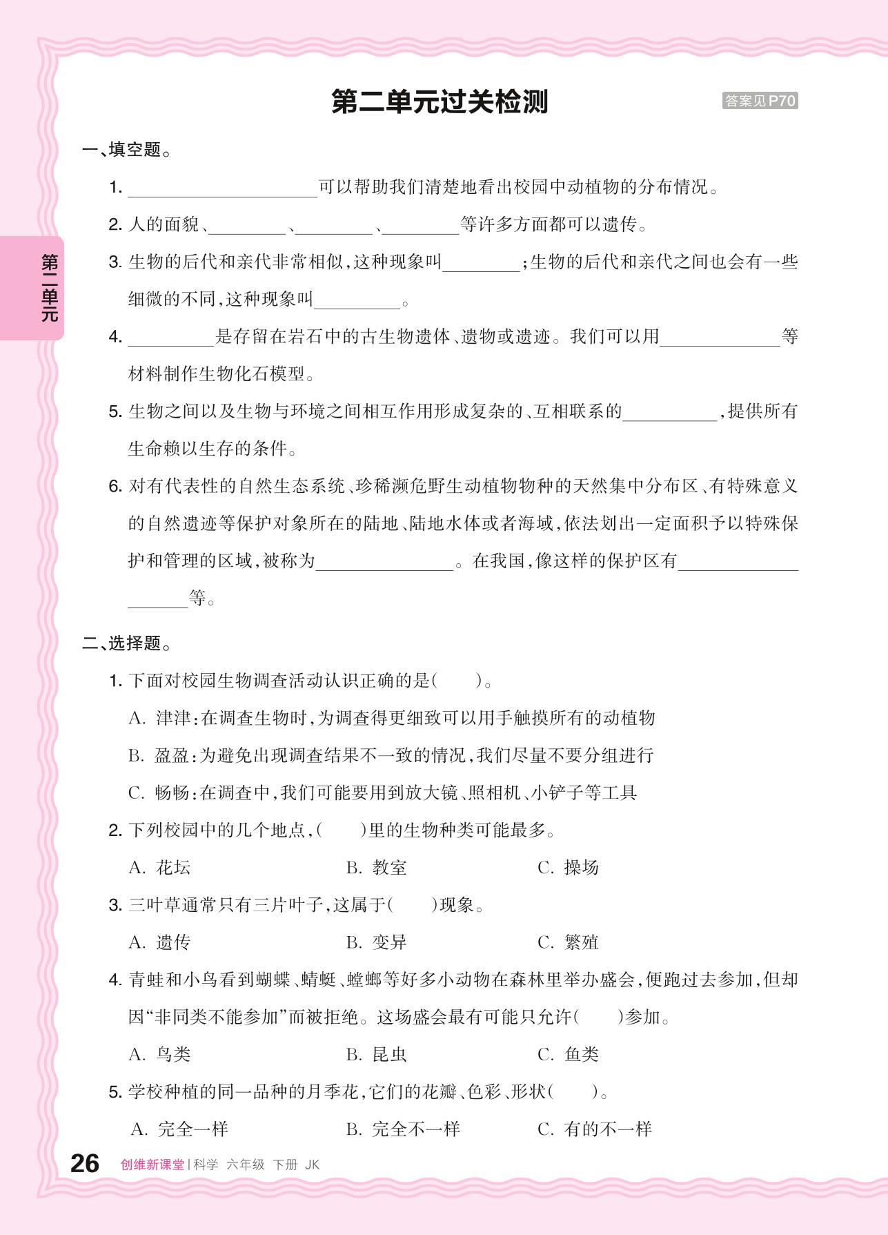 六年级科学教科版下册单元卷