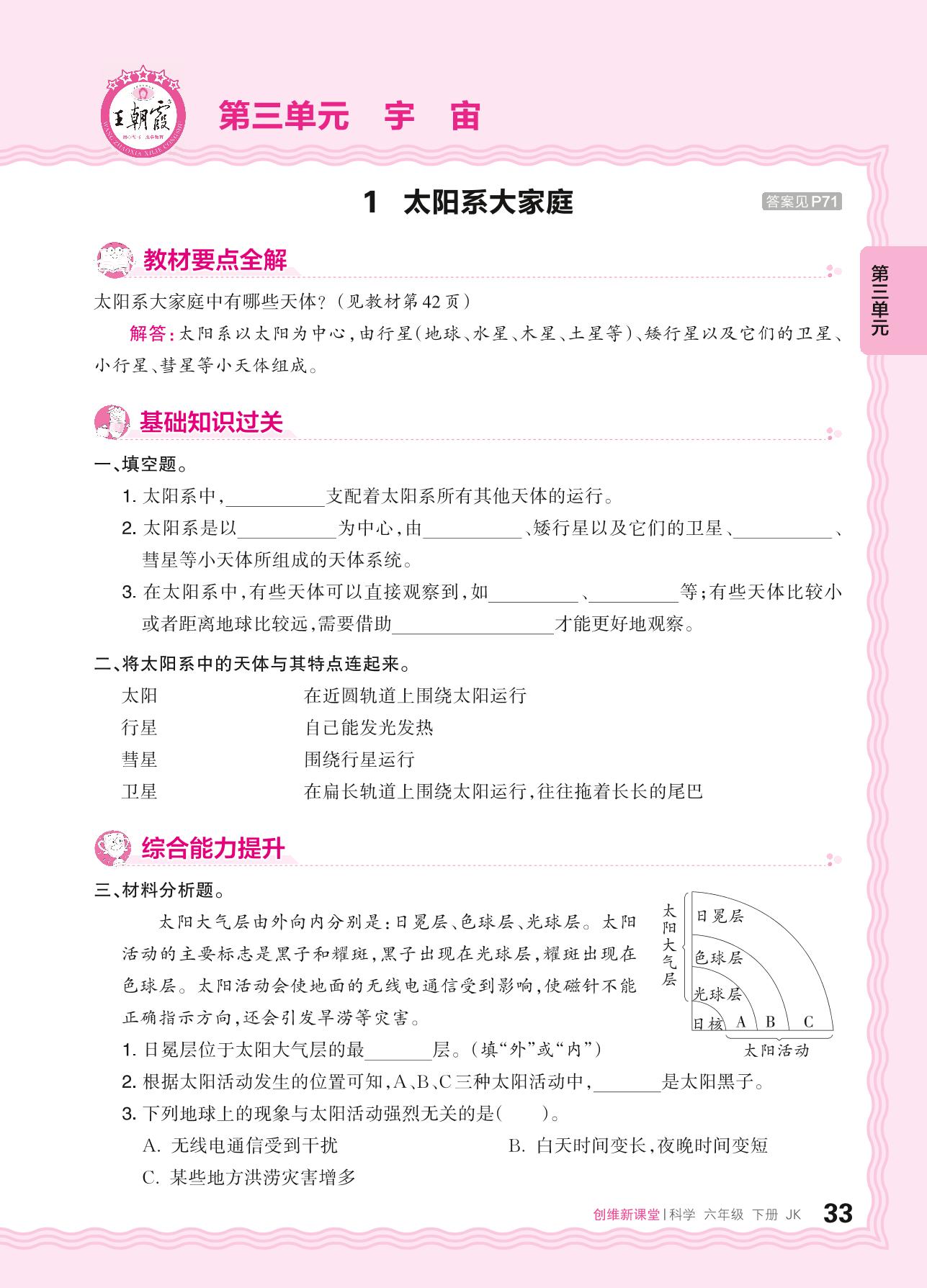 2024春下册六年级科学教科版 第三单元 宇宙——1. 太阳系大家庭