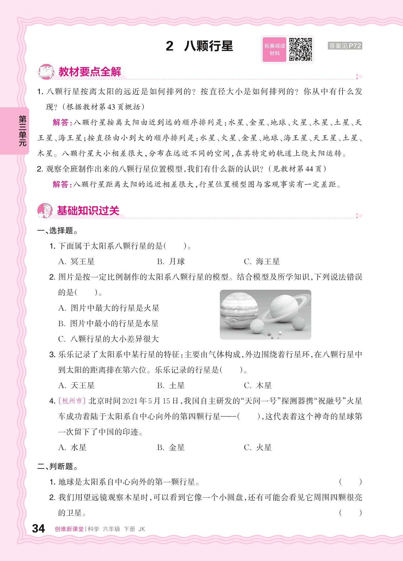 2024春下册六年级科学教科版 第三单元 宇宙——2. 八颗行星