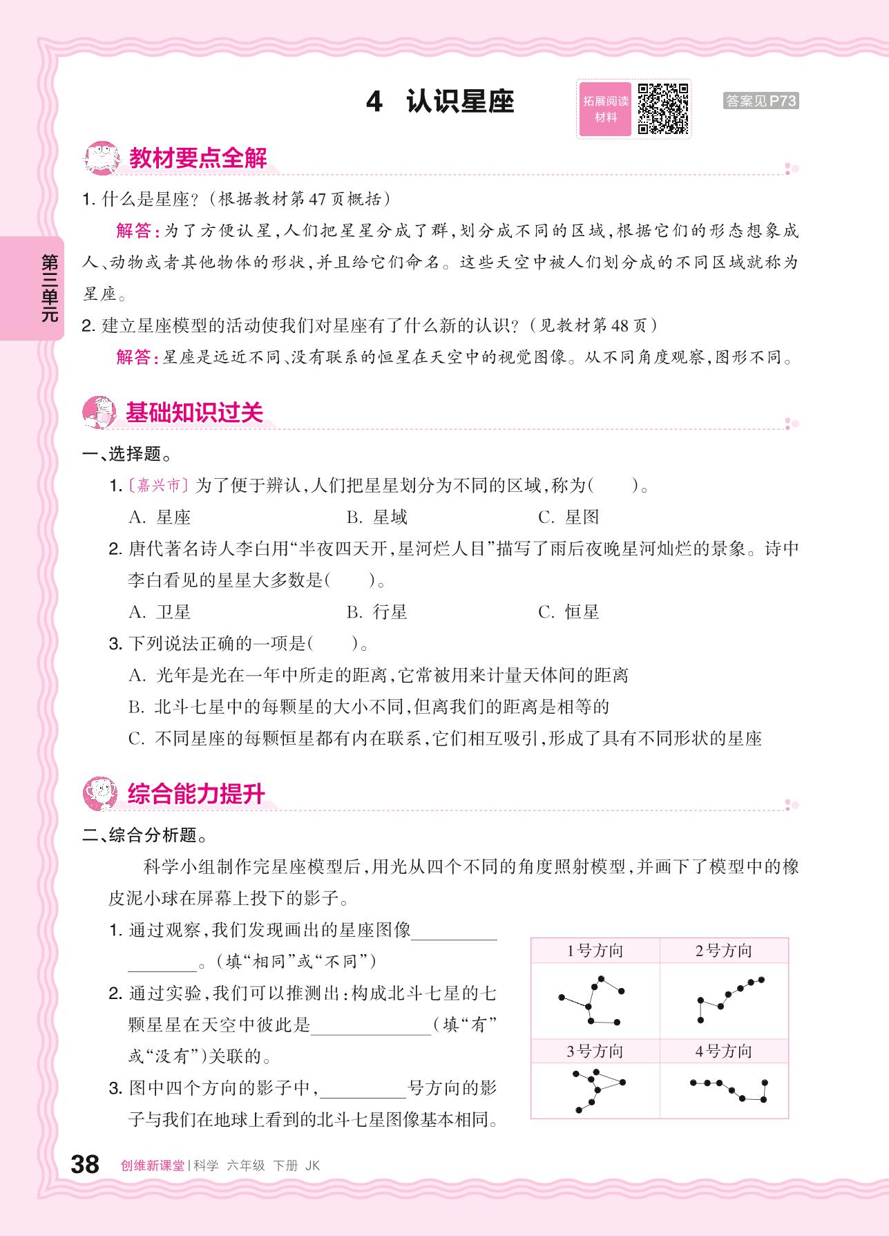 2024春下册六年级科学教科版 第三单元 宇宙——4. 认识星座