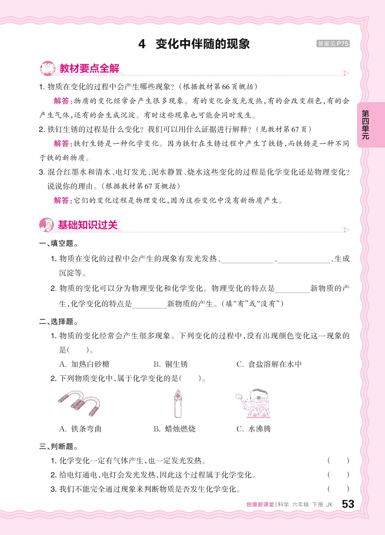 2024春下册六年级科学教科版 第四单元 物质的变化——4. 变化中伴随的现象