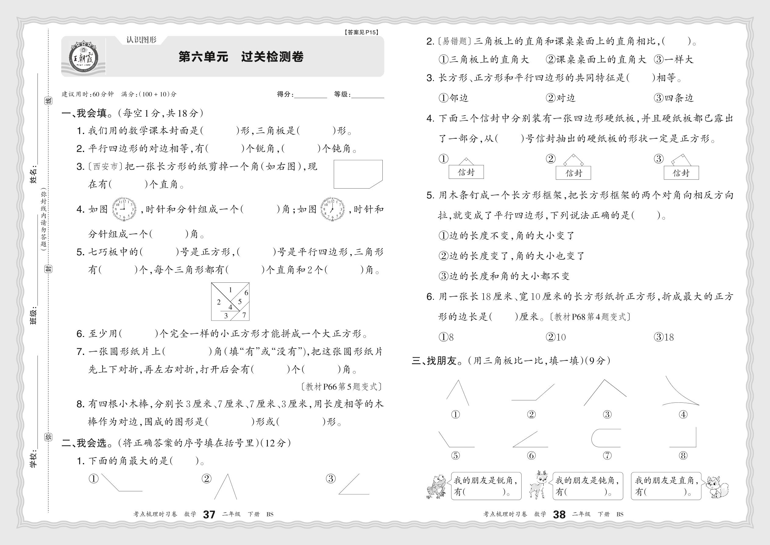 2024春下册二年级数学北师版 第六单元 过关检测卷