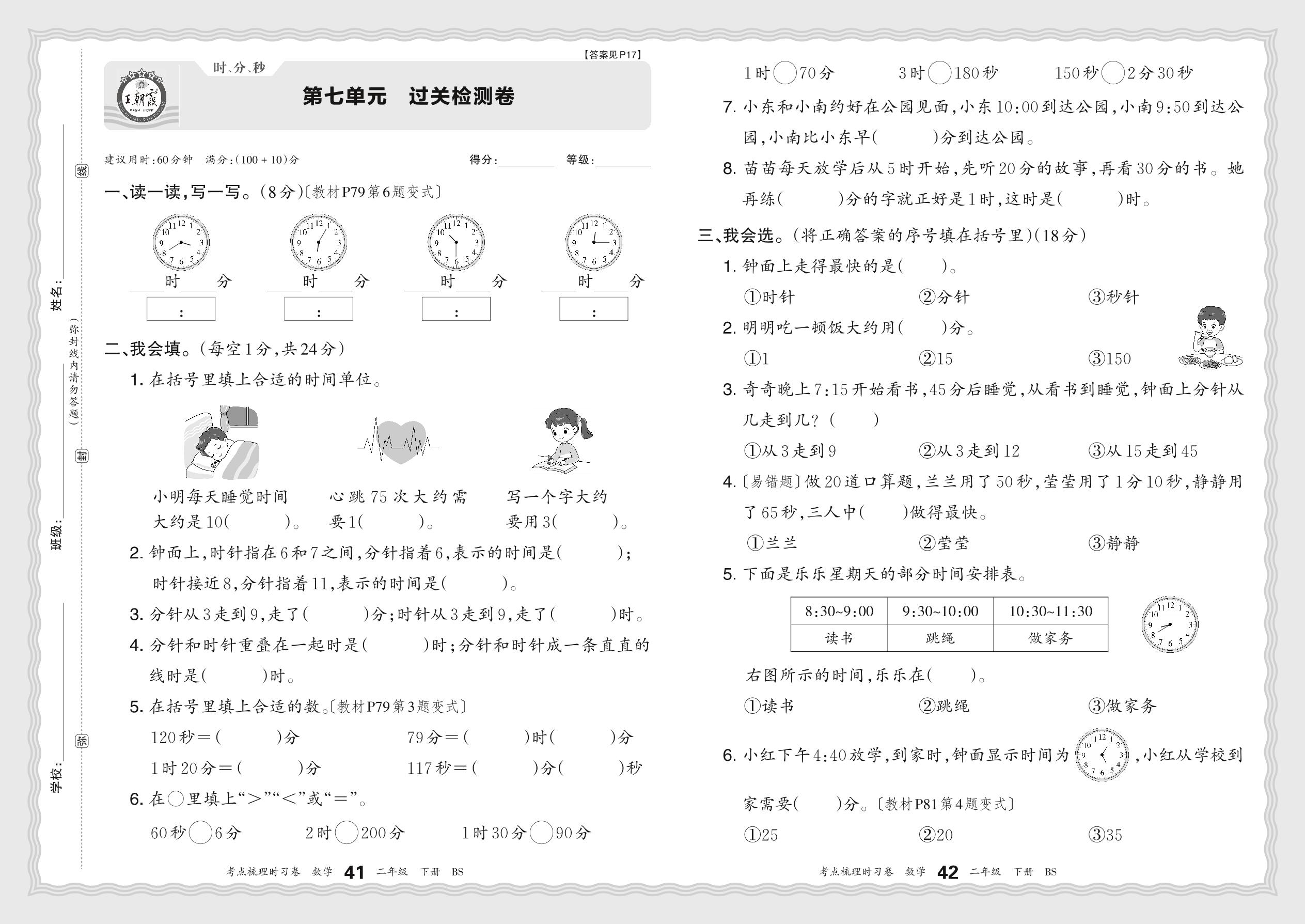 二年级数学北师版下册单元卷