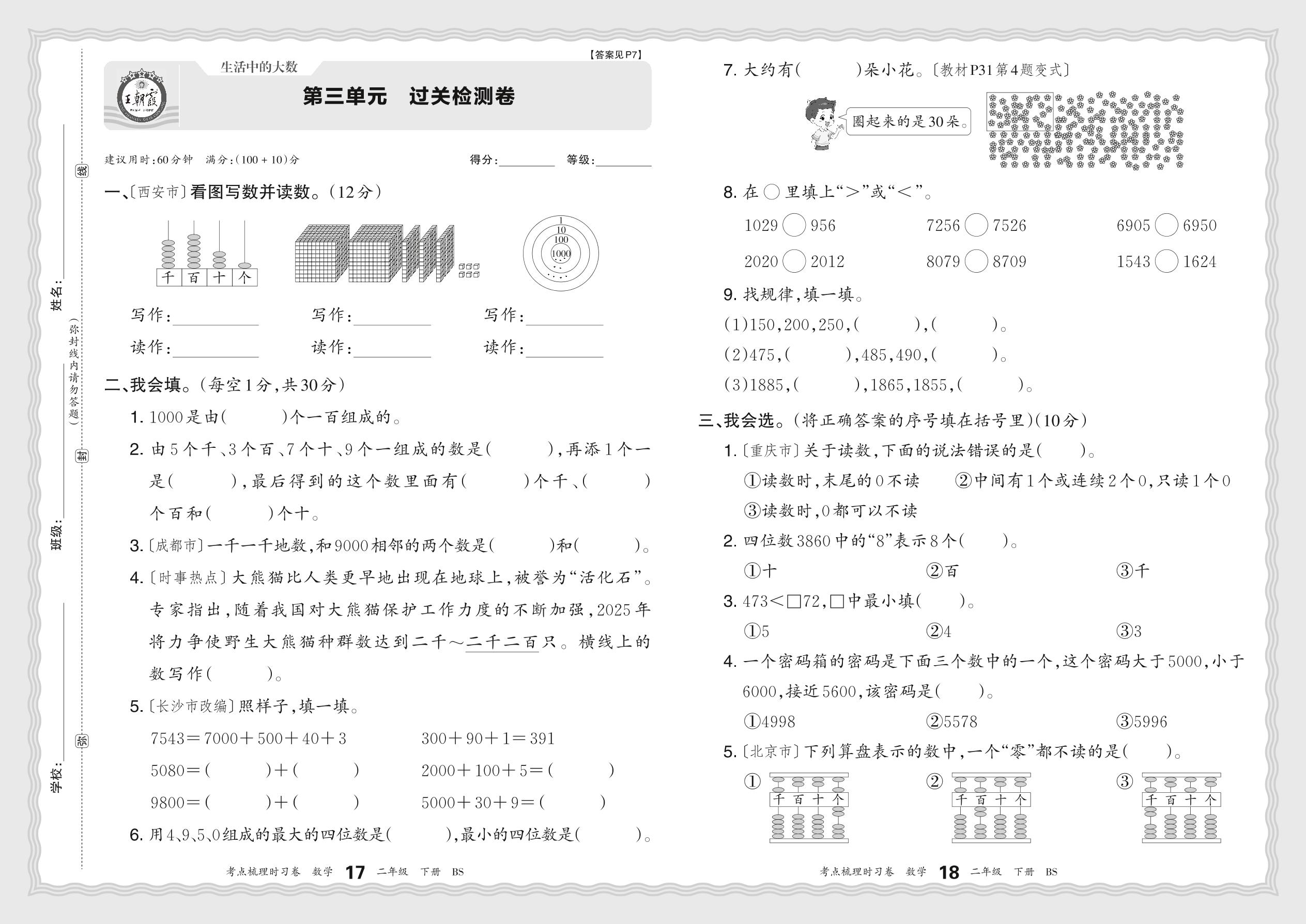 二年级数学北师版下册单元卷