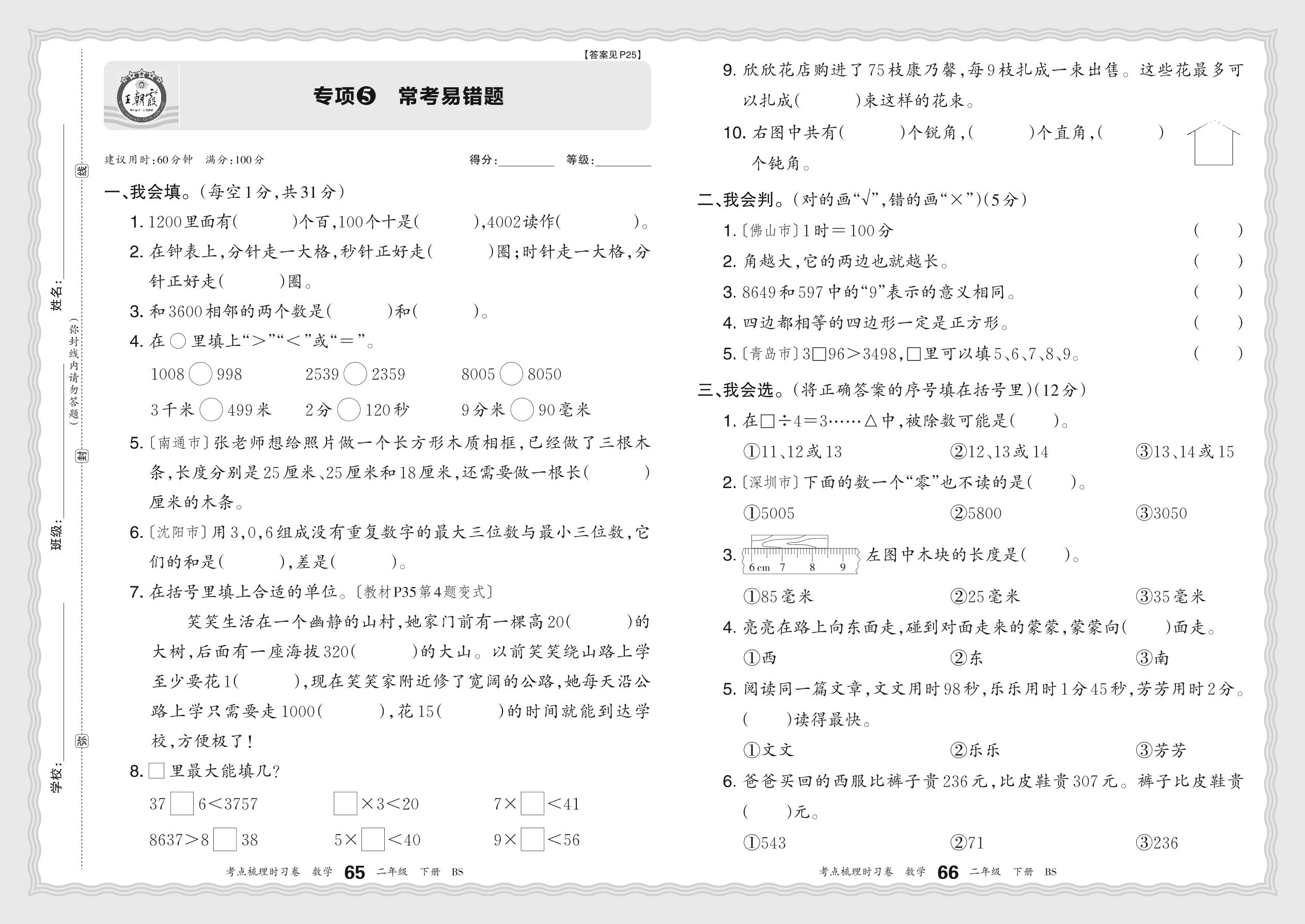 2024春下册二年级数学北师版 期末专项卷KD版·常考易错题【5】