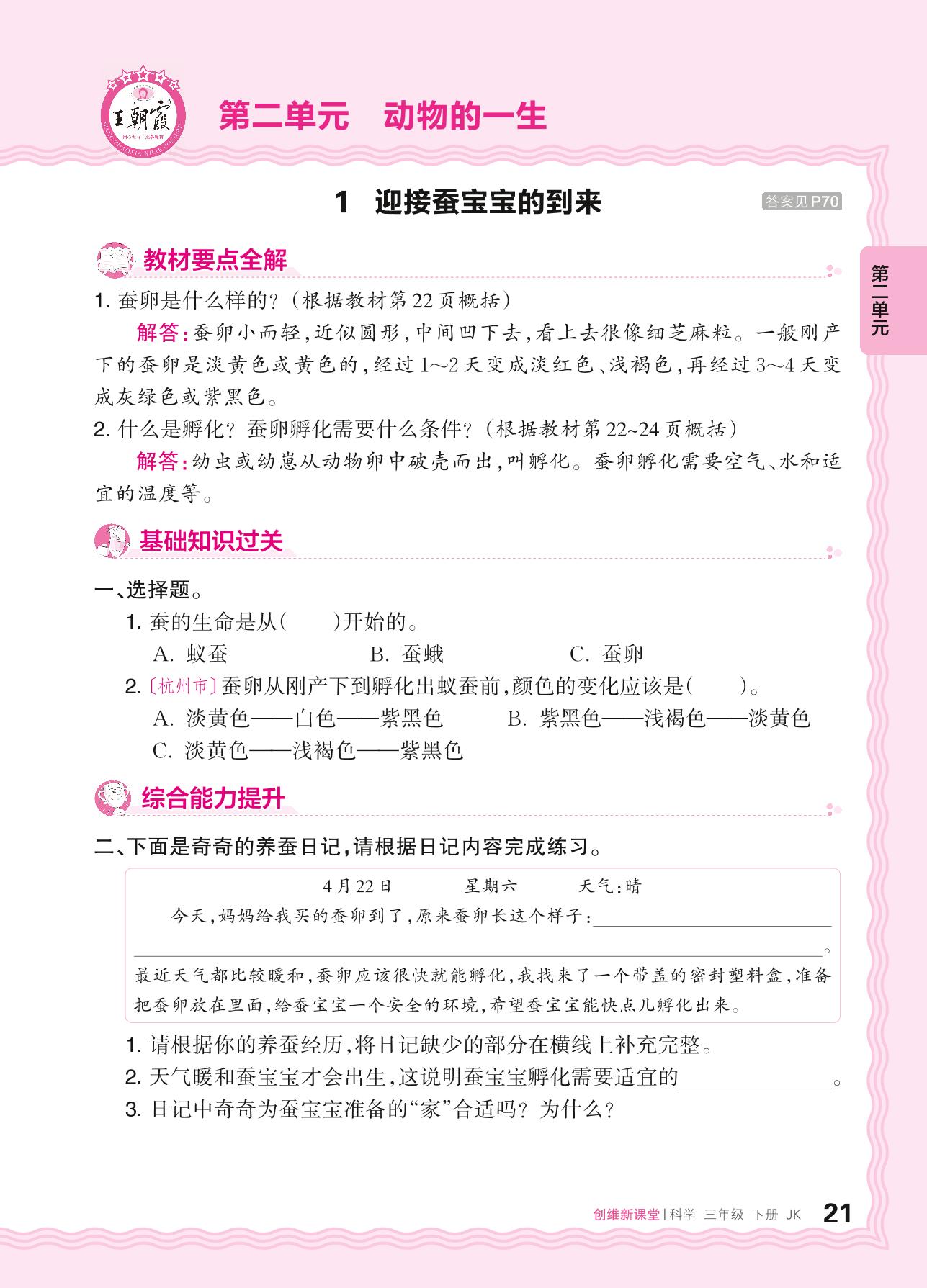 2024春下册三年级科学教科版 第二单元 动物的一生——1. 迎接蚕宝宝的到来