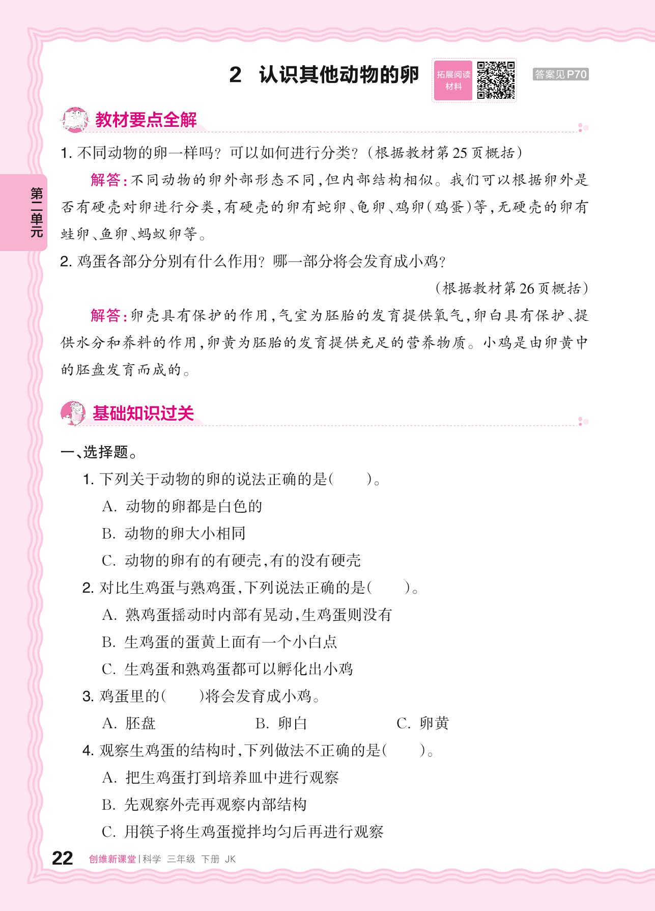 2024春下册三年级科学教科版 第二单元 动物的一生——2. 认识其他动物的卵