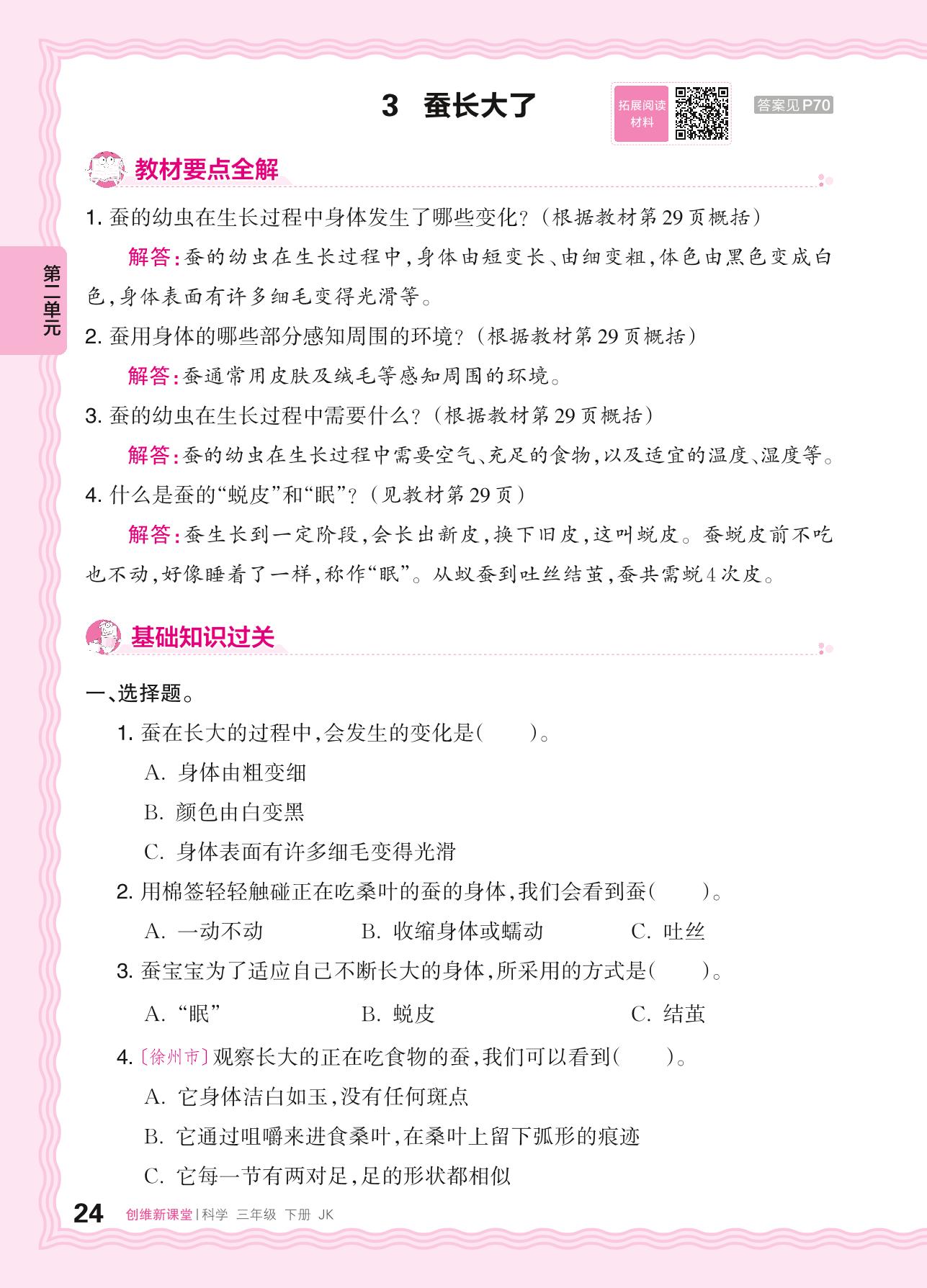 2024春下册三年级科学教科版 第二单元 动物的一生——3. 蚕长大了