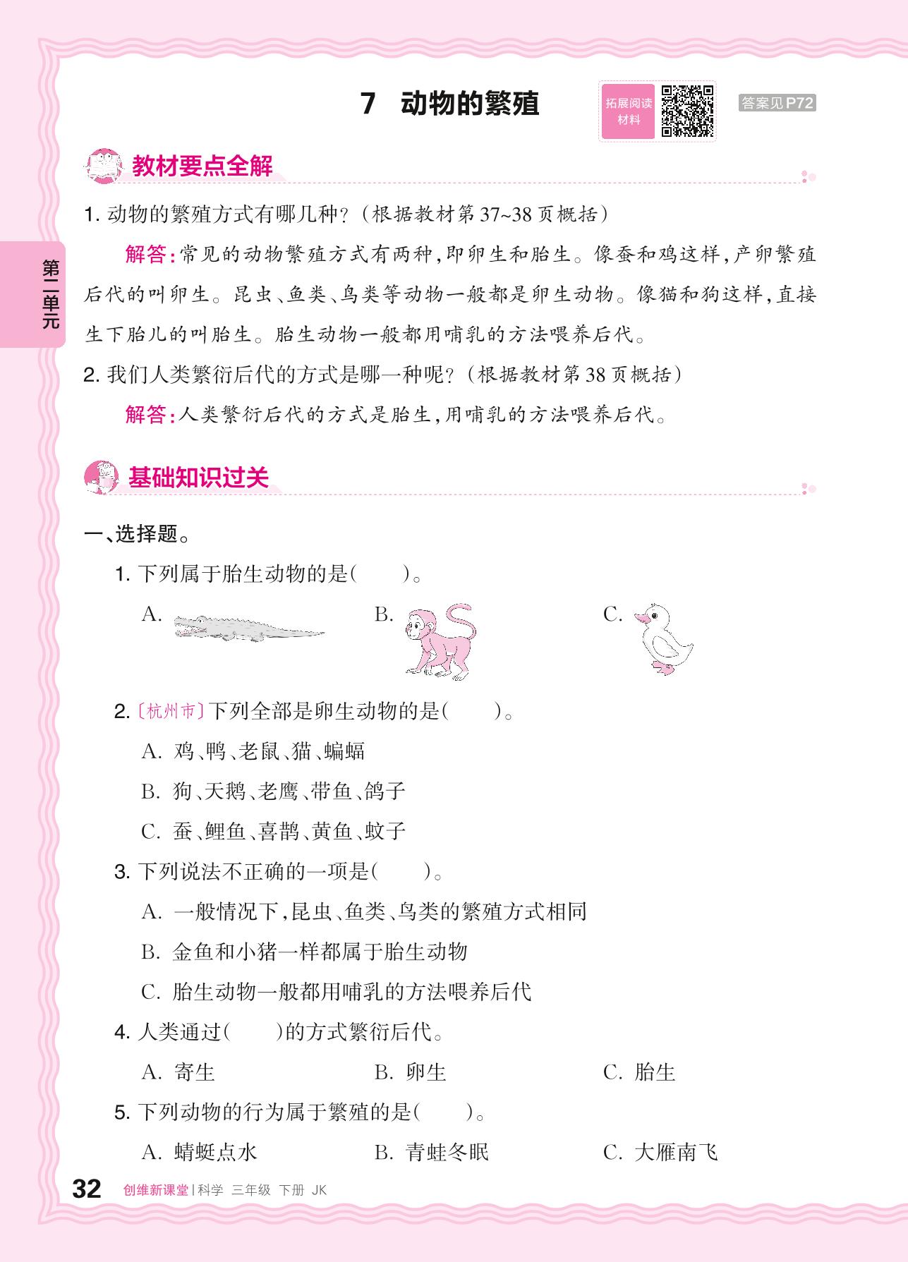 2024春下册三年级科学教科版 第二单元 动物的一生——7. 动物的繁殖