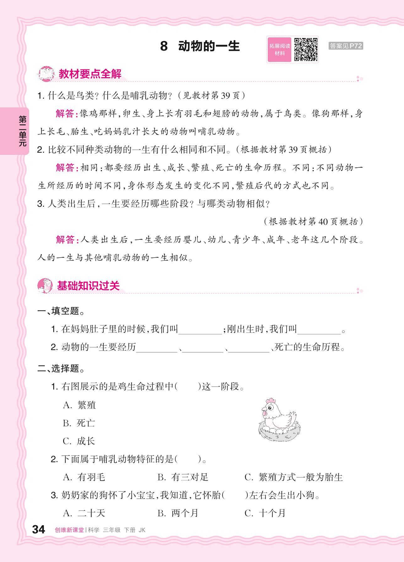 2024春下册三年级科学教科版 第二单元 动物的一生——8. 动物的一生