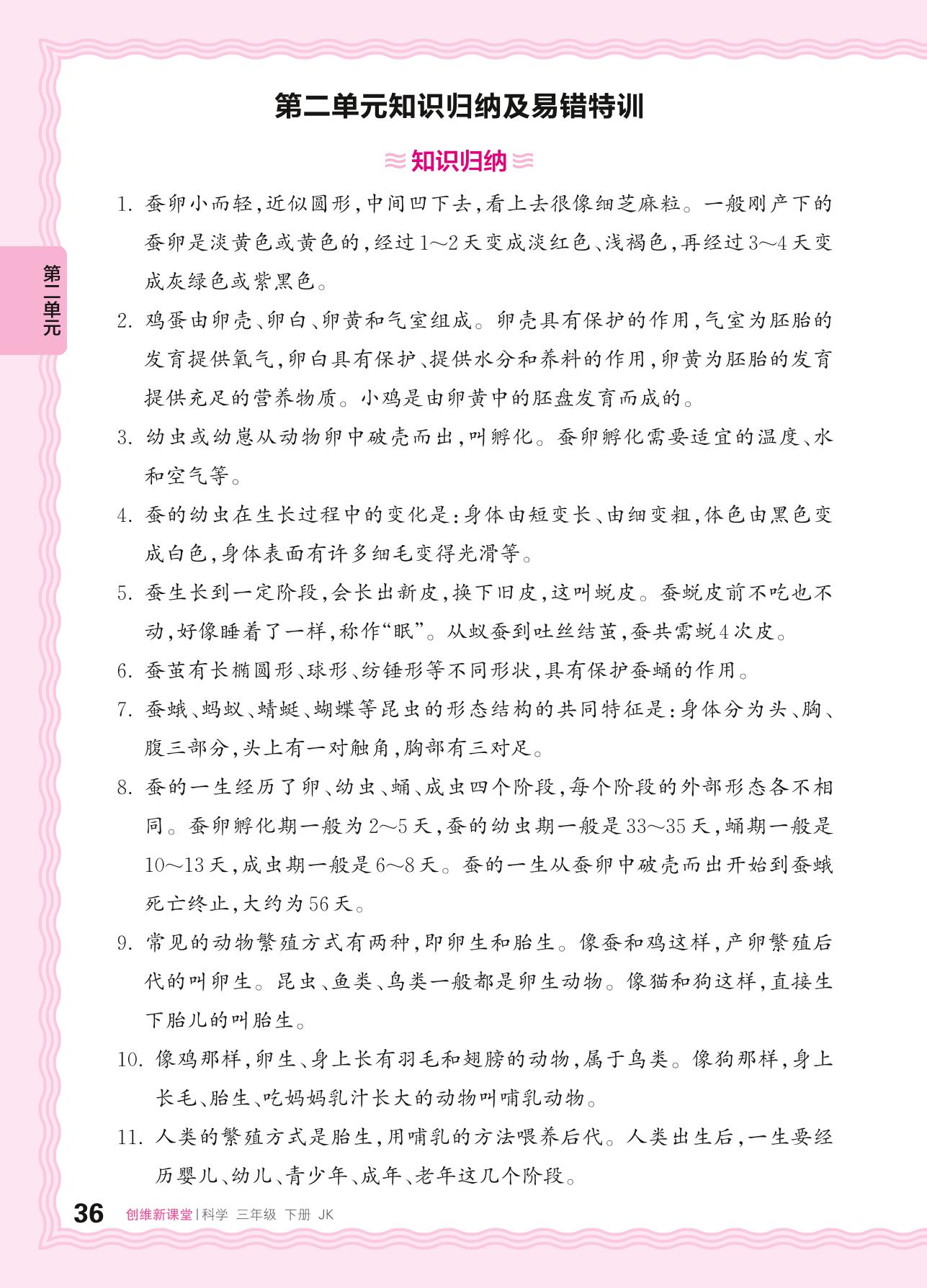 2024春下册三年级科学教科版 第二单元知识归纳及易错特训