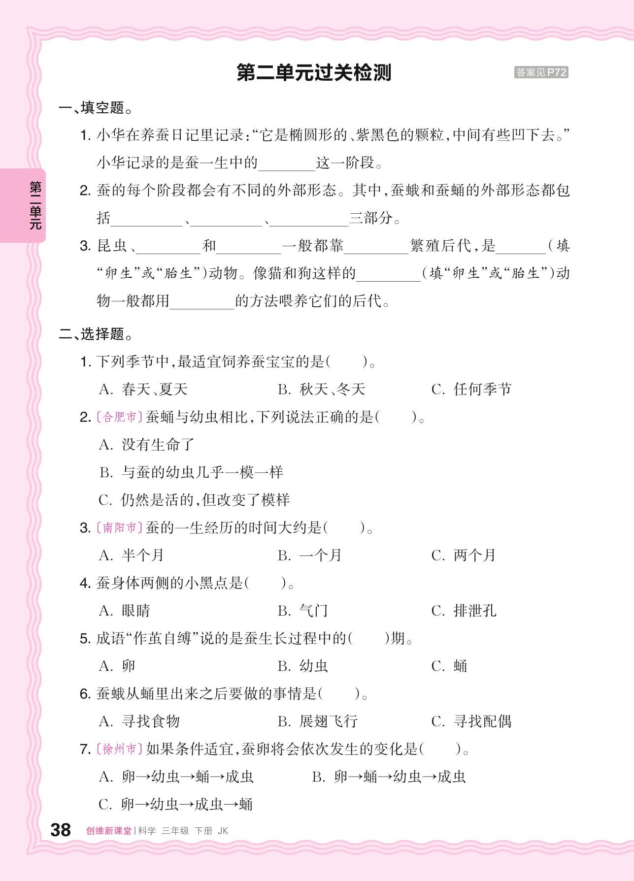 三年级科学教科版下册单元卷