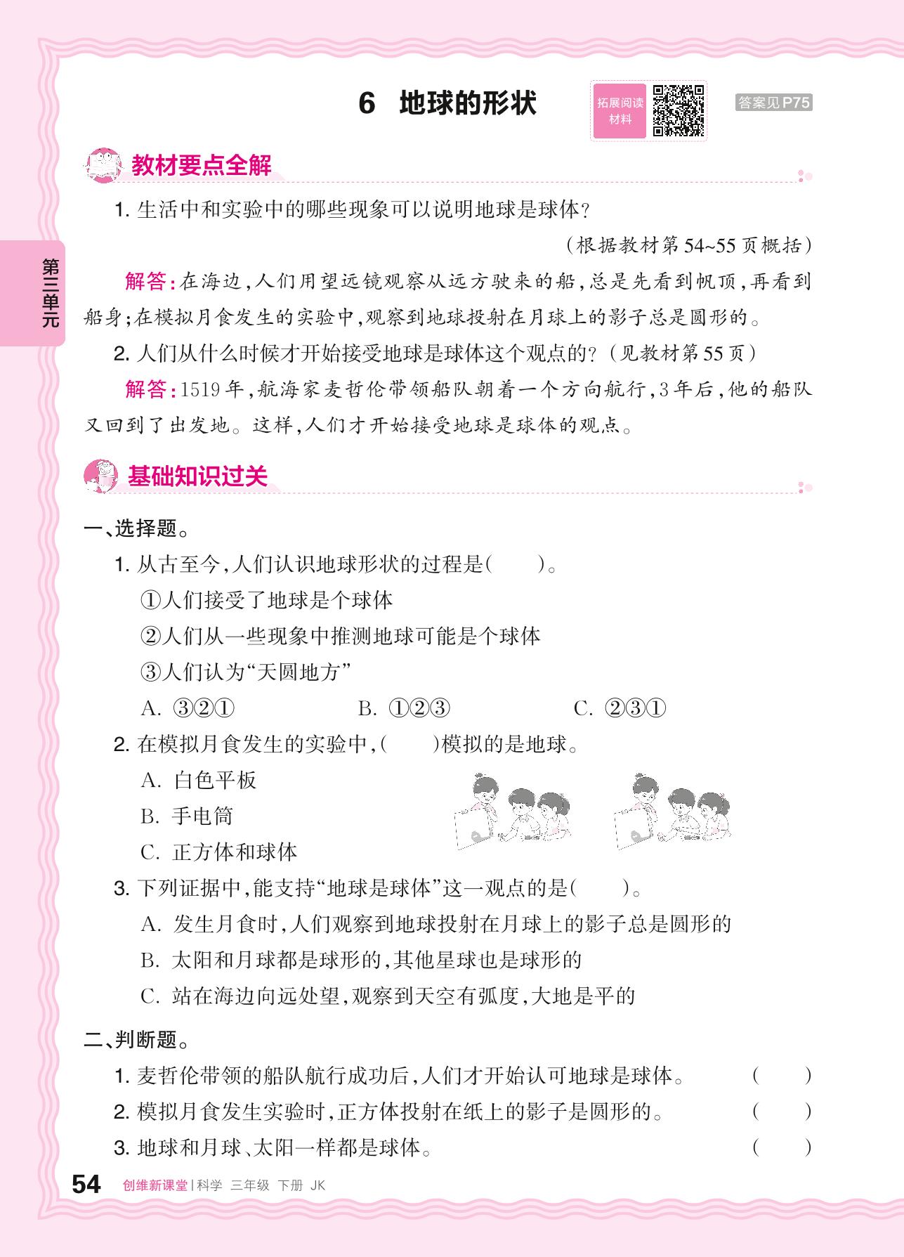 2024春下册三年级科学教科版 第三单元 太阳、地球和月球——6. 地球的形状