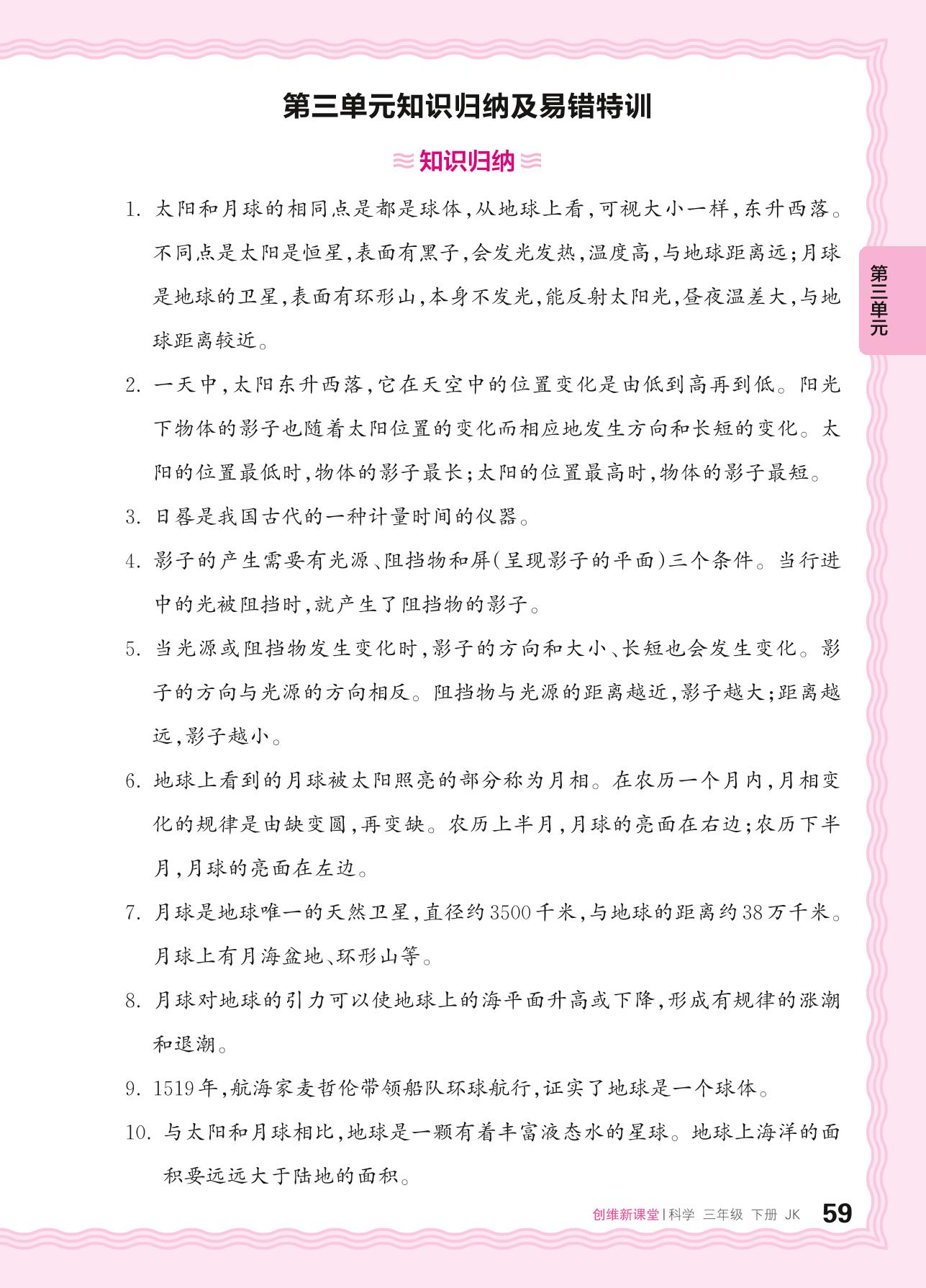 2024春下册三年级科学教科版 第三单元知识归纳及易错特训