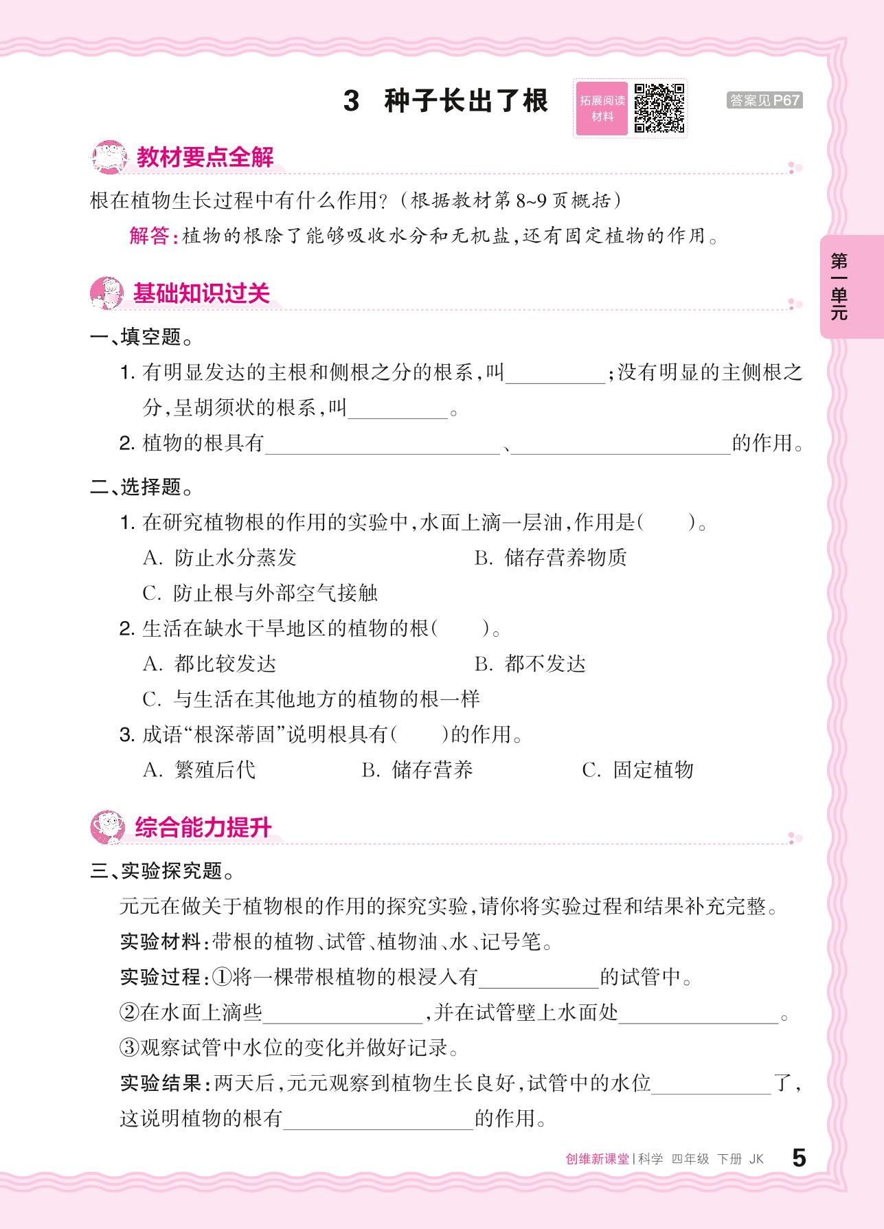 2024春下册四年级科学教科版 第一单元 植物的生长变化——3. 种子长出了根