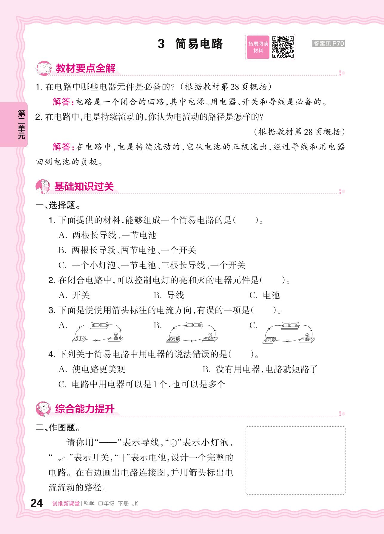 2024春下册四年级科学教科版 第二单元 电路——3. 简易电路
