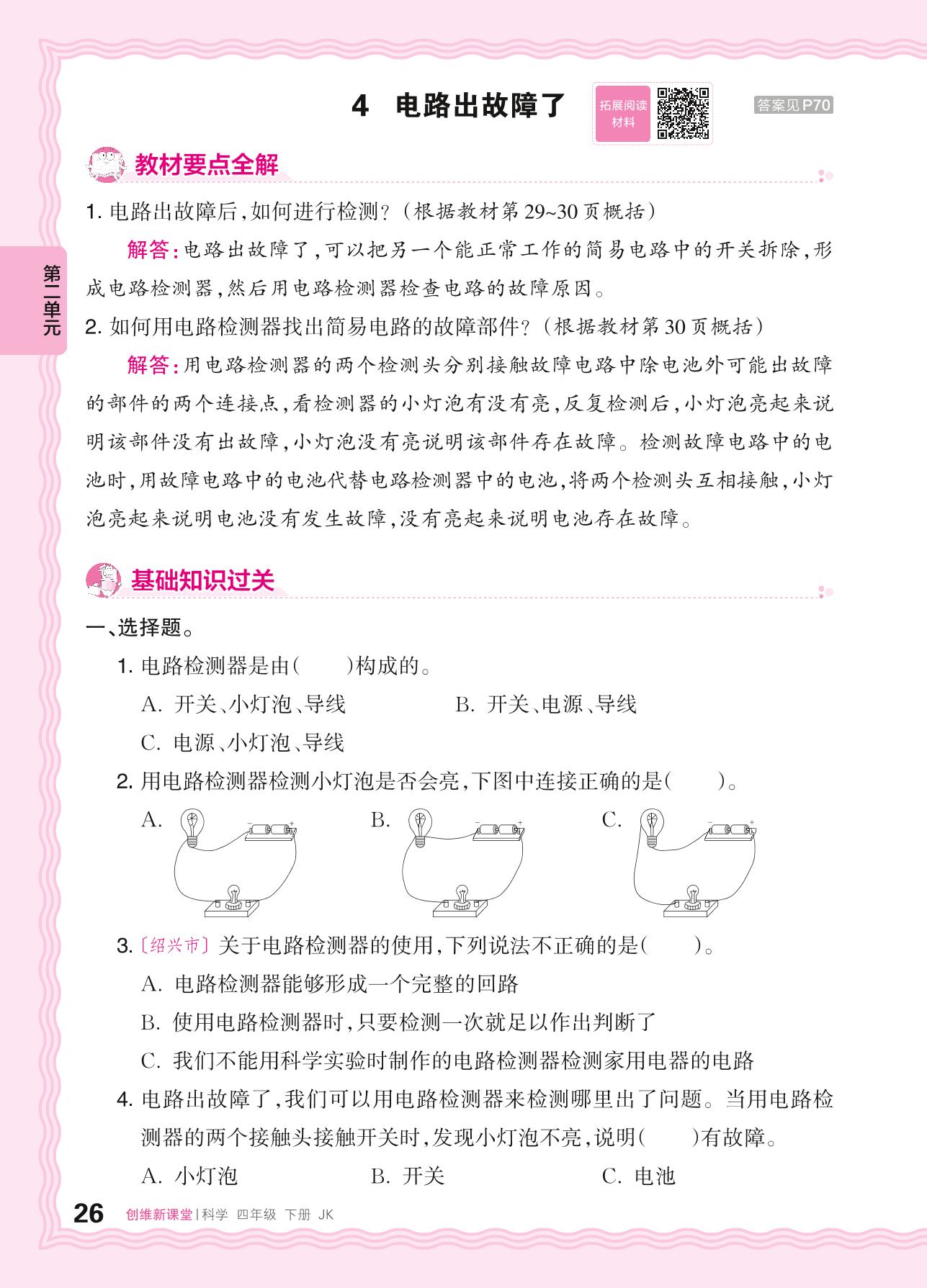 2024春下册四年级科学教科版 第二单元 电路——4. 电路出故障了