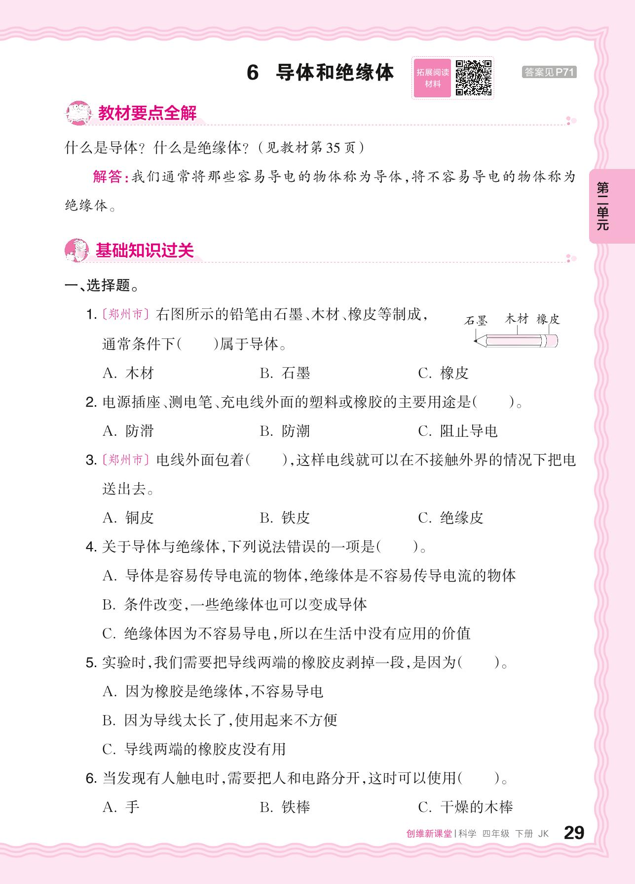2024春下册四年级科学教科版 第二单元 电路——6. 导体和绝缘体