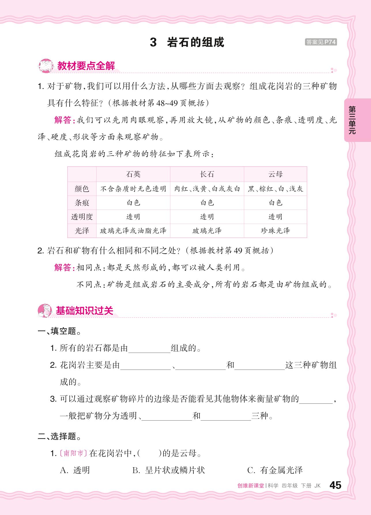 2024春下册四年级科学教科版 第三单元 岩石与土壤——3. 岩石的组成