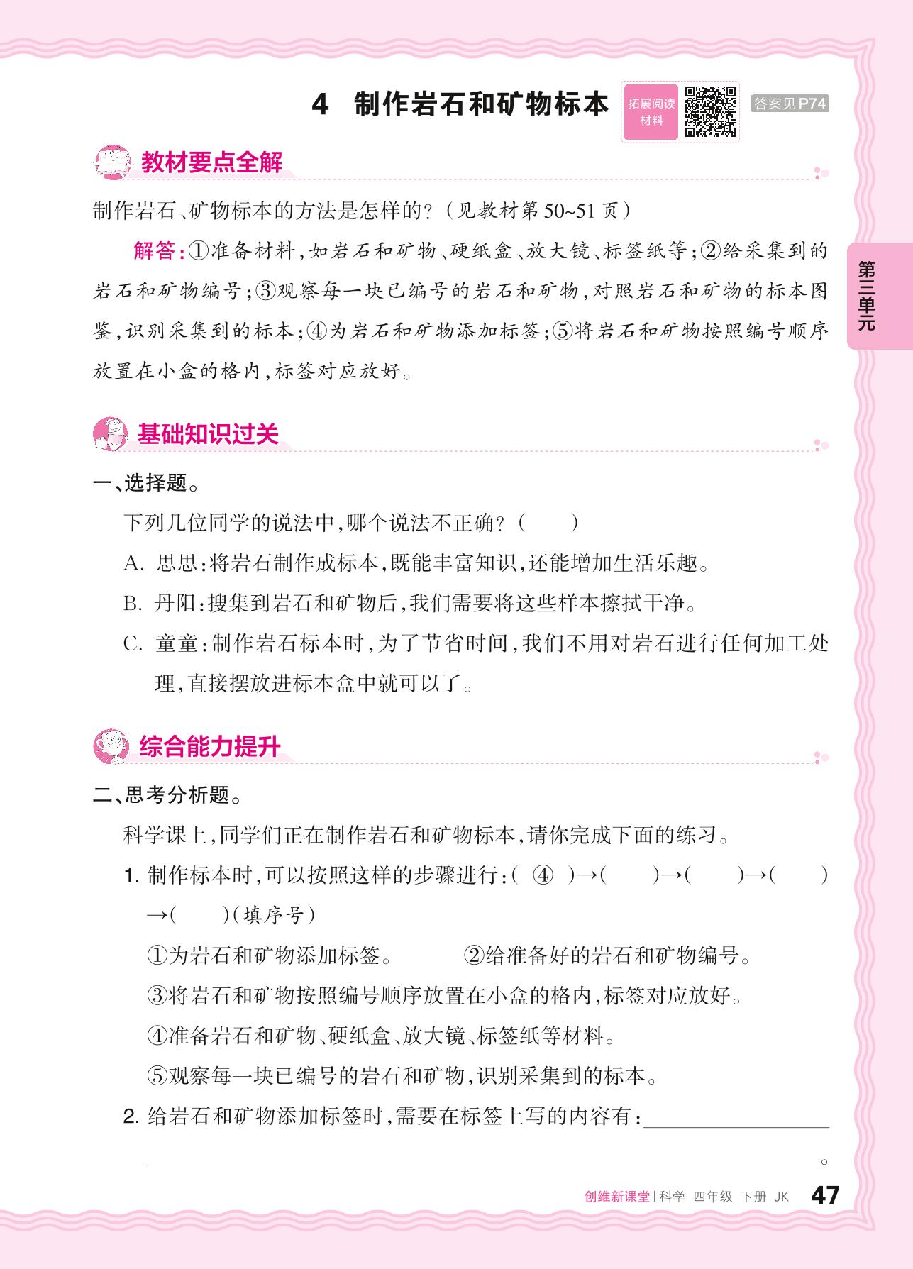 2024春下册四年级科学教科版 第三单元 岩石与土壤——4. 制作岩石和矿物标本