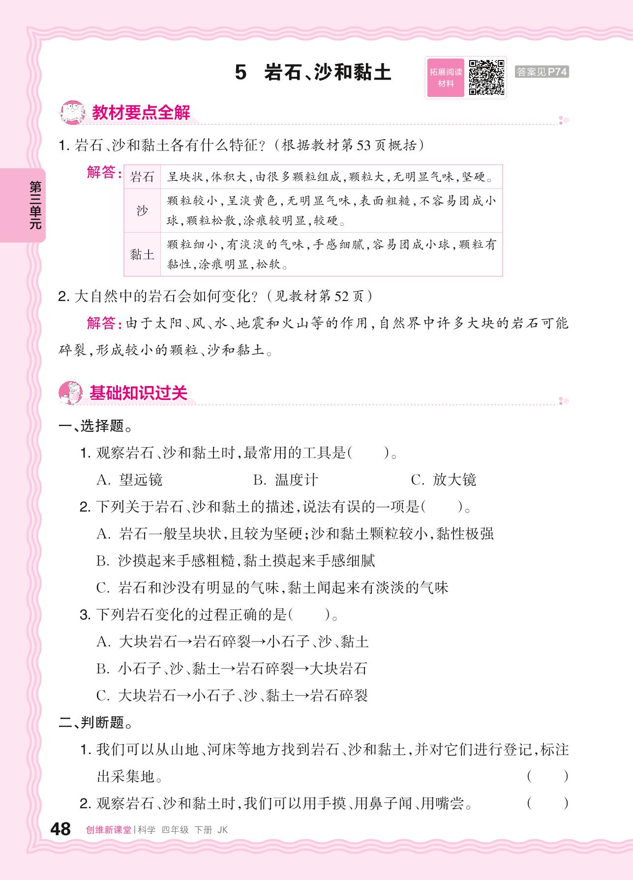 2024春下册四年级科学教科版 第三单元 岩石与土壤——5. 岩石、沙和黏土