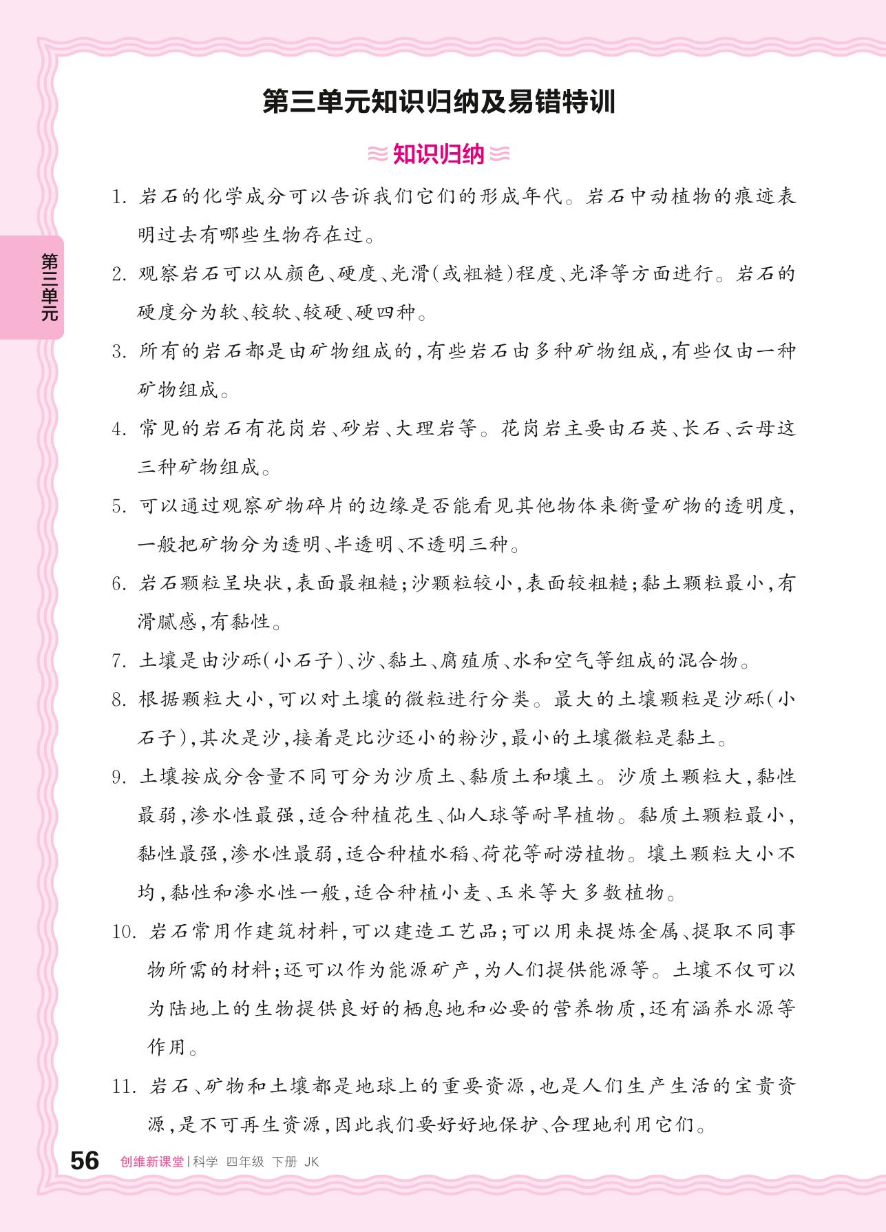 2024春下册四年级科学教科版 第三单元知识归纳及易错特训