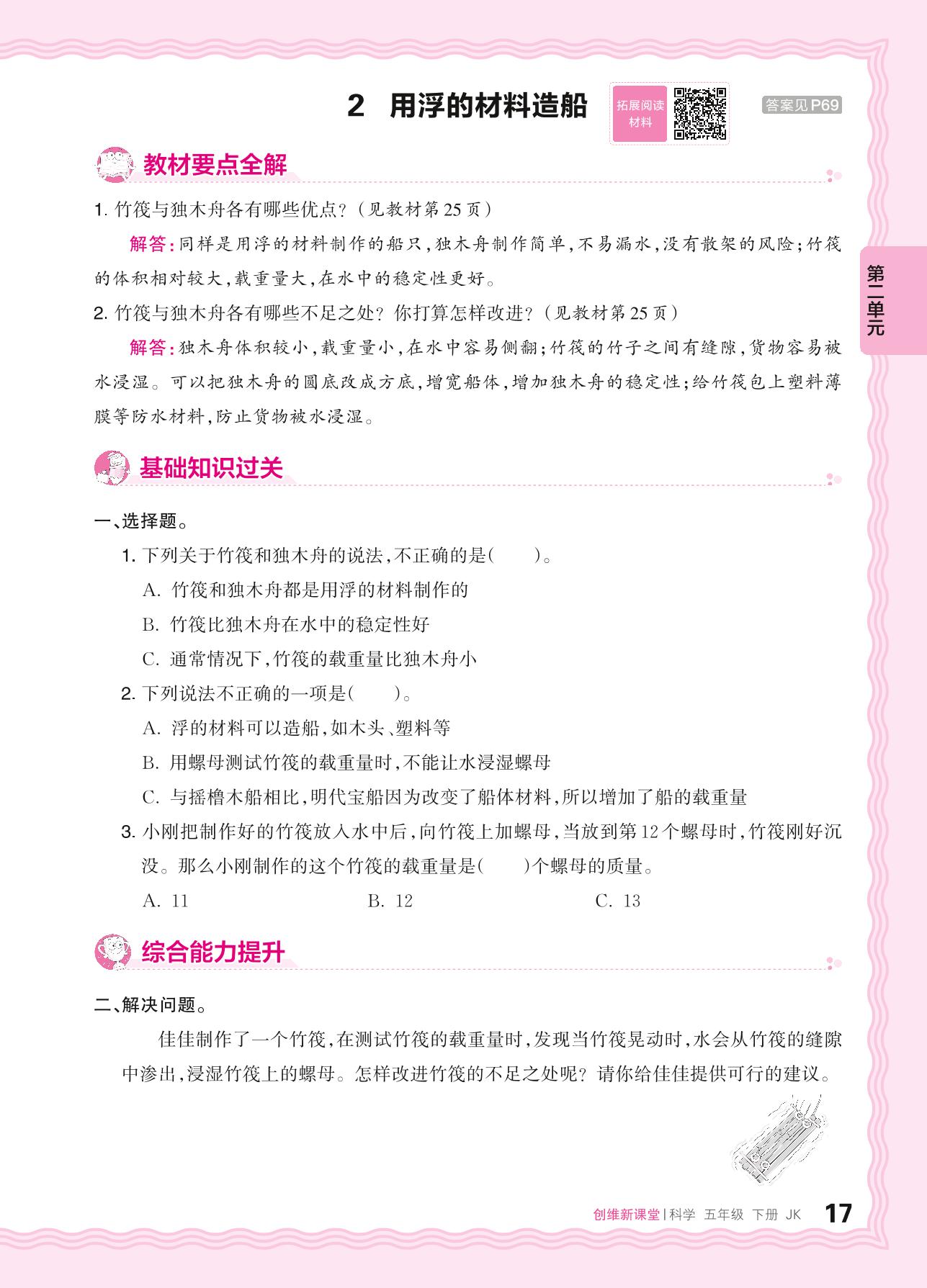 2024春下册五年级科学教科版 第二单元 船的研究——2. 用浮的材料造船